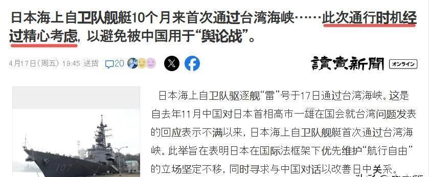 话说回来,这艘名为“雷”号的日本驱逐舰,来头可不算小。这是日本舰艇第四次穿越台海,距离上一次足足憋了10个月。日媒《读卖新闻》自己都大方承认,这次航行的时间是经过“精心计算”的。他们算盘打得噼啪响,无非就是想在关键节点恶心我们一把,顺便给岛内那些上蹿下跳的跳梁小丑打一剂强心针。