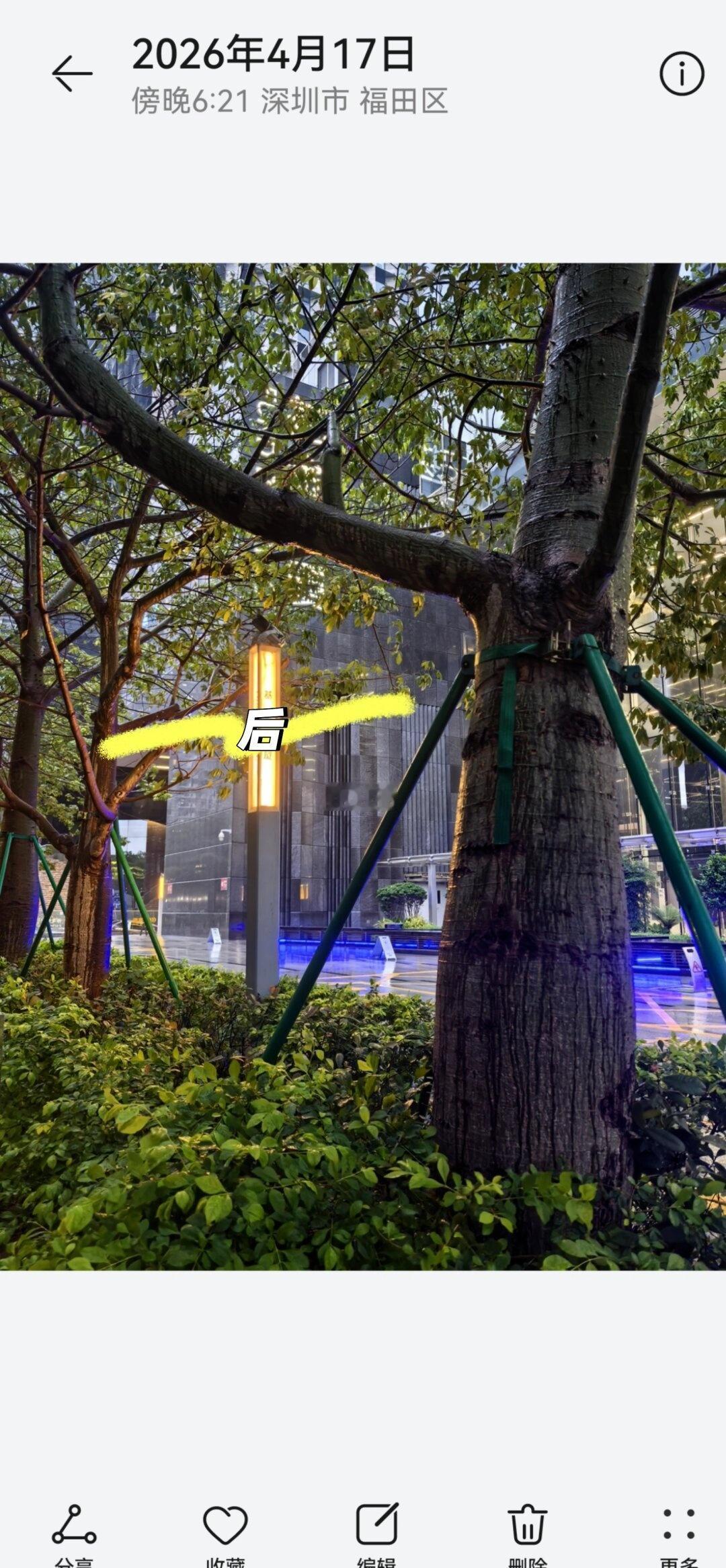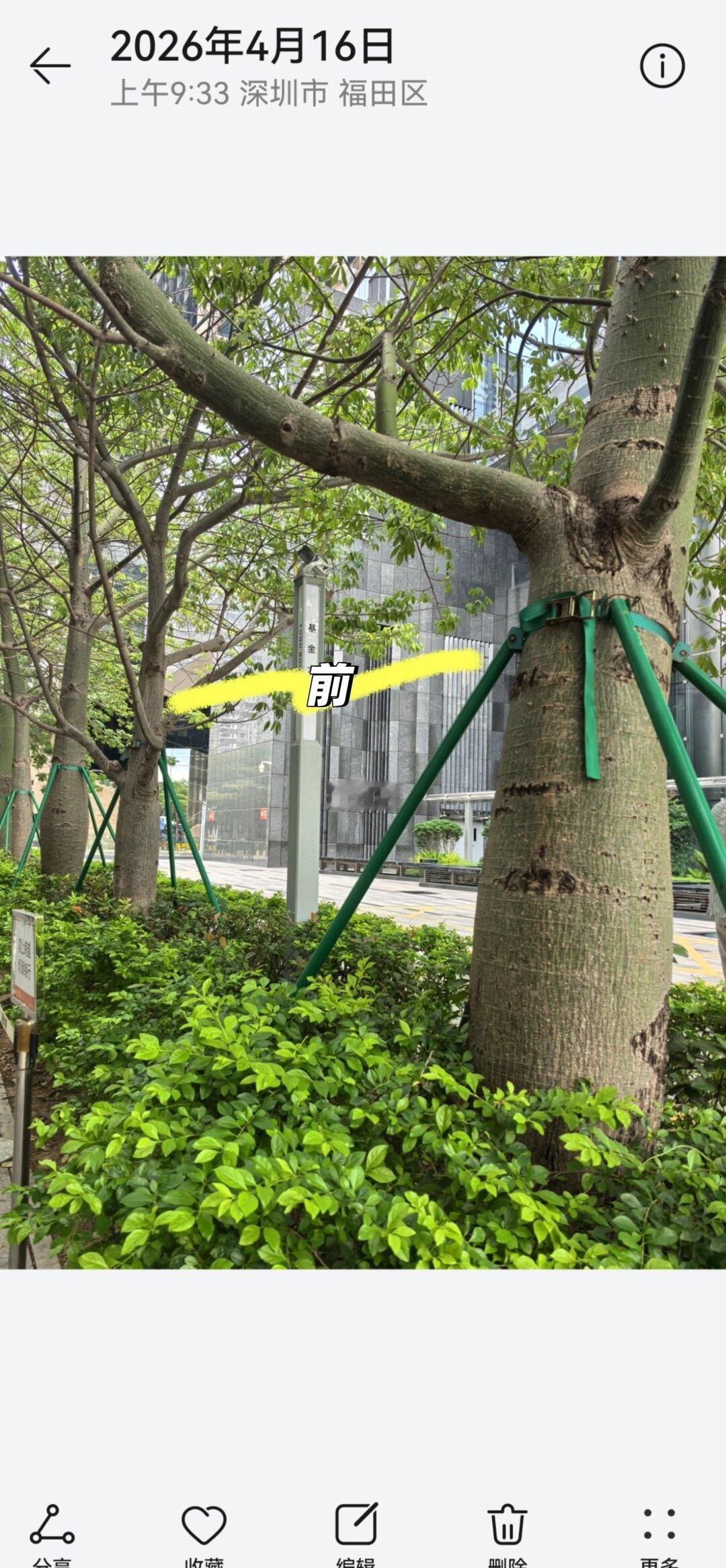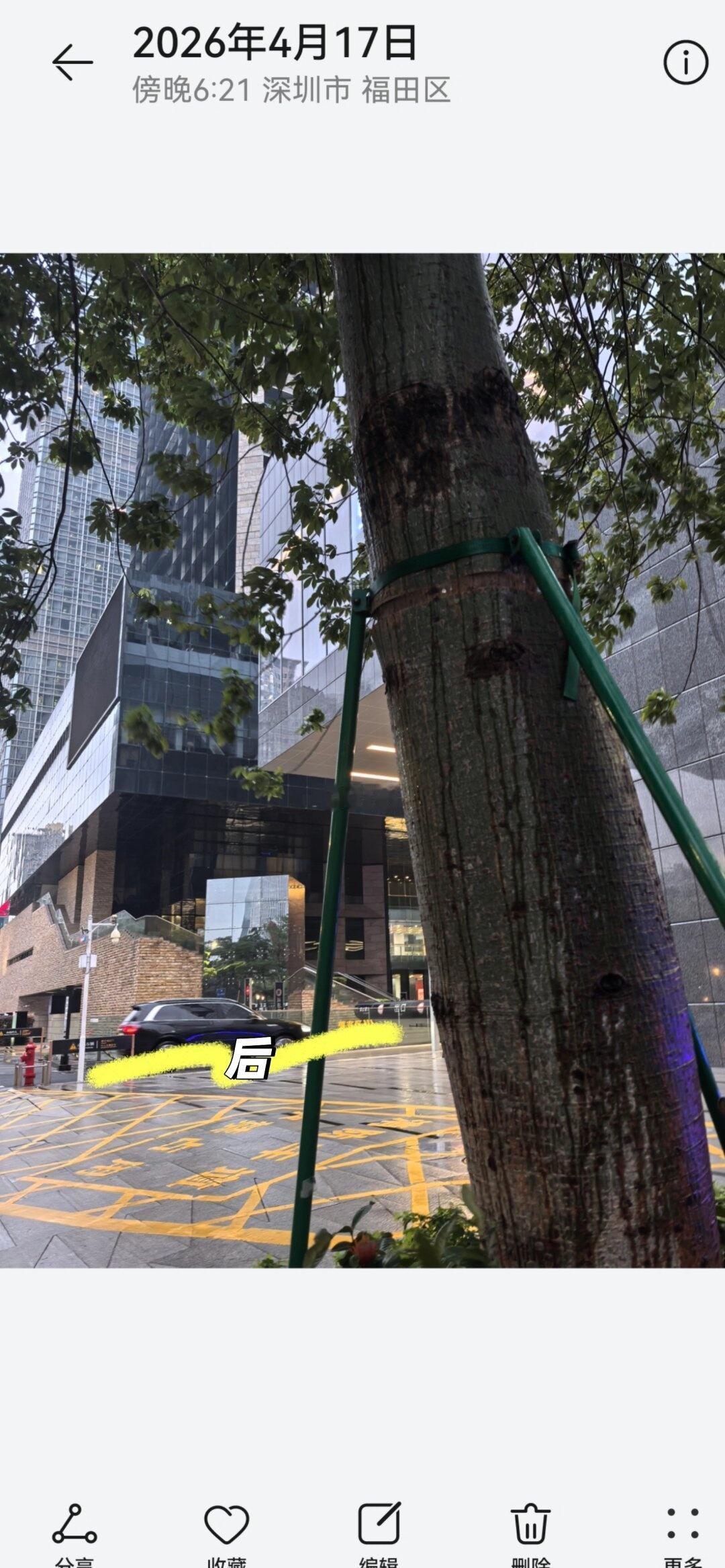 昨天突然发现路边的紫荆花树被勒得够呛,晚上通过“深圳城管公众号-互联网+督查”留言了情况。