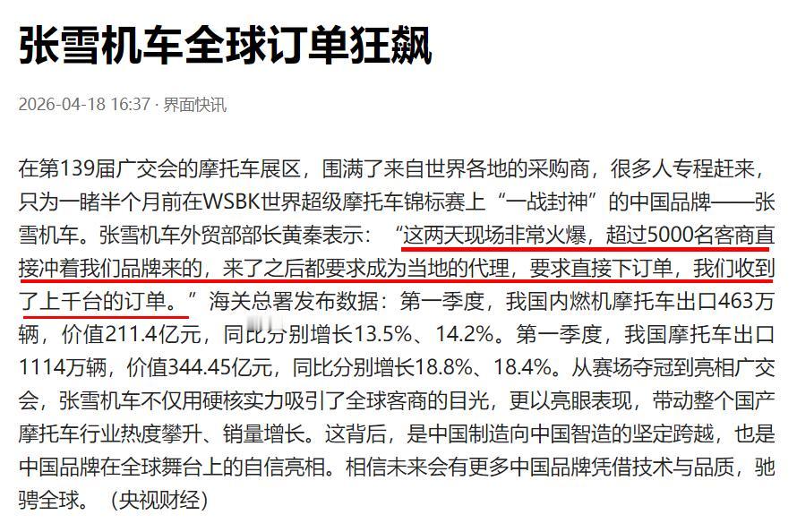真的太火爆了,按照这种节奏,张雪机车直接让欧日高端摩托睡不着觉了。张雪说拿下50%的高端市场,估计都要提前完成。
