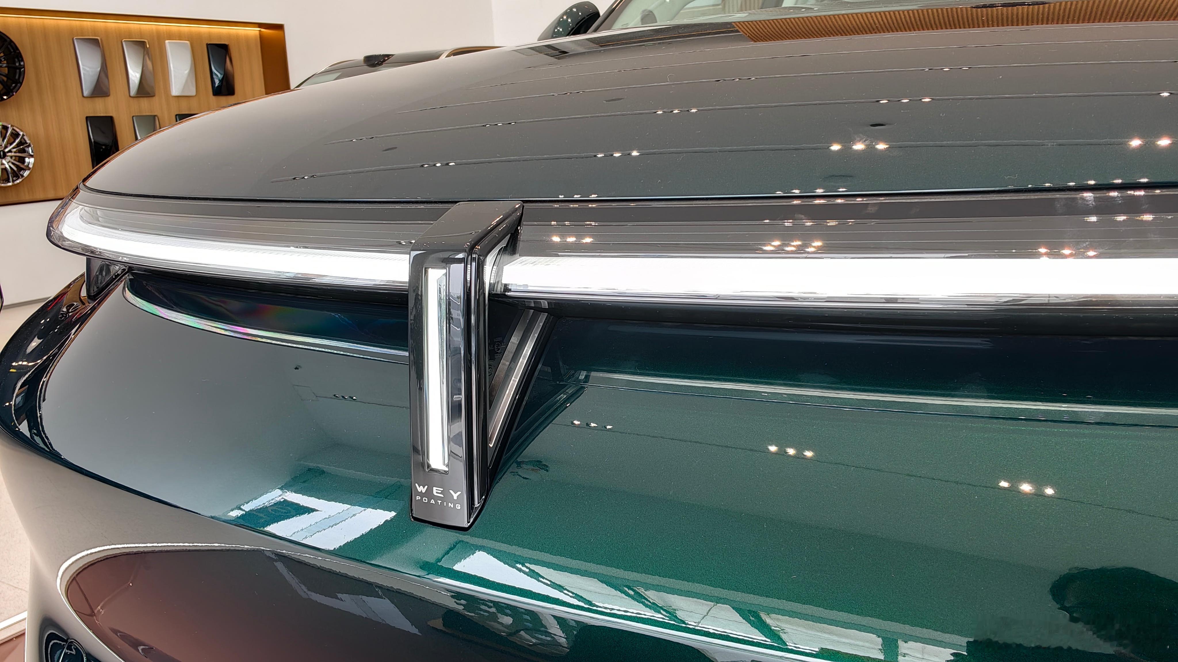 从这个细节能看出老魏本人对产品从设计到体验还是有所了解的,实际上再给大家说两个细节,比如这辆车的前灯,为什么要做个旗杆样子的车标把贯穿等阻断?当然一方面是众所周知的“树立大旗”的意识,另一方面是把前贯穿灯一分为二,降低单个组件的成本,如果你将来车灯坏了,可以只换一般,不用整个全换,这个成本就控制了很多。