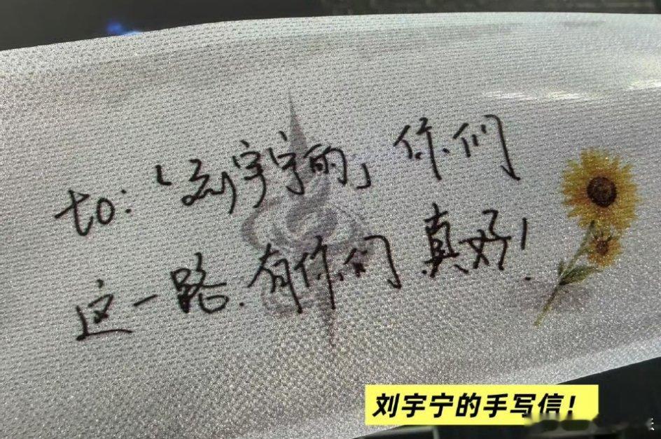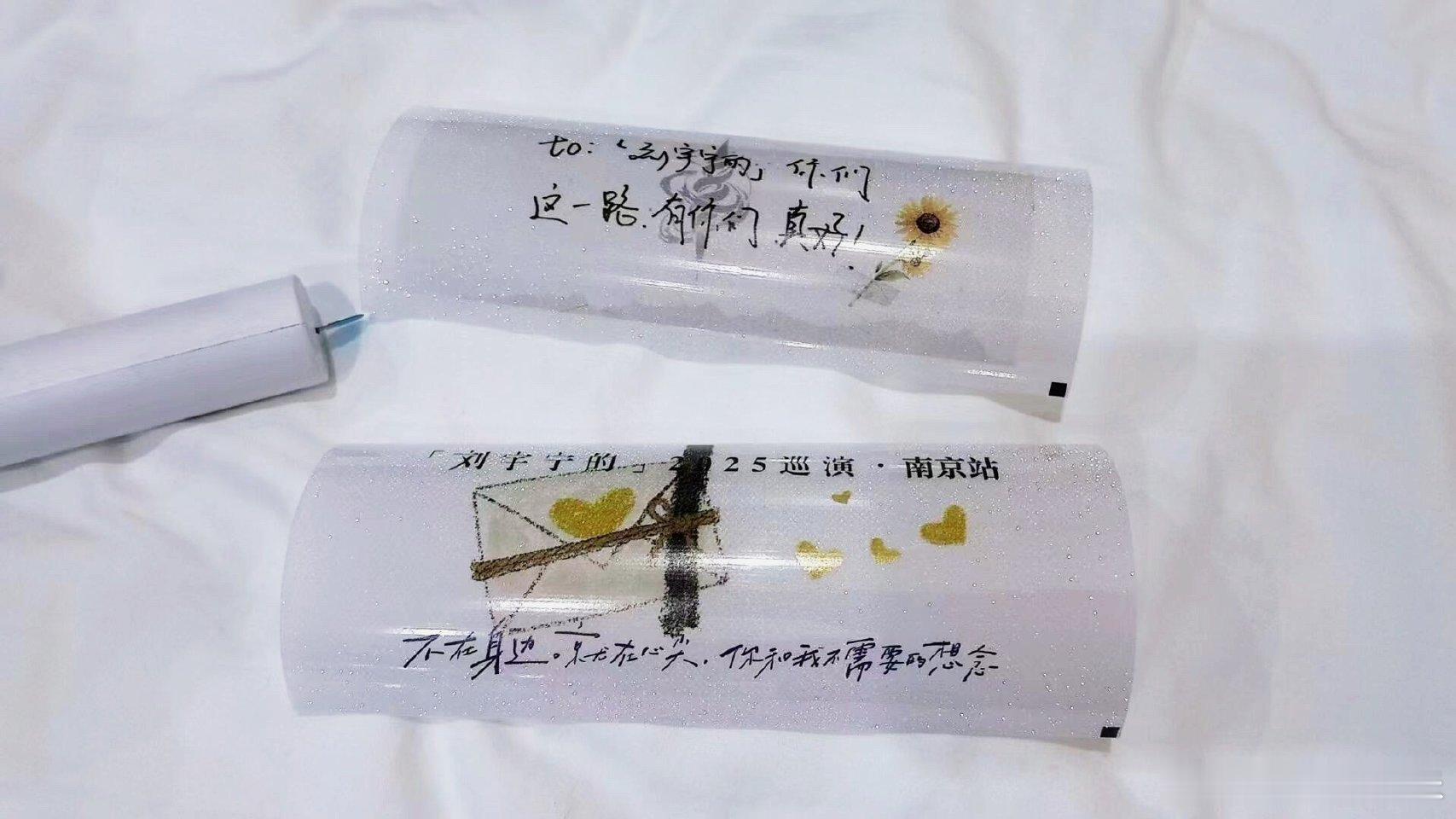 我也拥有刘宇宁的to签了🥹荧光棒上写着:“to:刘宇宁的你们,这一路有你们真好”“不在身边,就在心间。你和我不需要的想念”被好好爱着的感觉,真的太幸福了我太爱你这个浪漫的人了!刘宇宁在荧光棒里藏手写信刘宇宁演唱会摩登兄弟