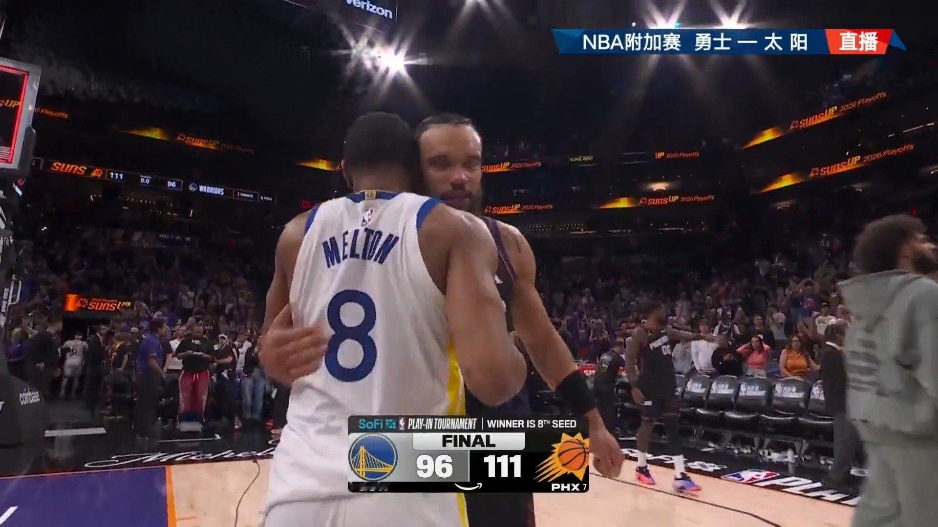 勇士无缘季后赛NBA西部附加赛收官战,太阳以111-96击败勇士,拿下西部最后一张季后赛门票,勇士赛季就此落幕。首节太阳便建立18分优势,勇士虽顽强反扑仍难逆转。库里16投仅4中得到17分,状态低迷;杰伦·格林轰下36分成为制胜功臣。追梦格林六犯离场后与布克冲突双双被逐,场面混乱。有人欢喜有人愁,太阳挺进季后赛首轮对阵雷霆,勇士连续两年无缘季后赛,38岁库里的坚守令人惋惜,王朝余晖渐散,球迷满是遗憾与不舍。NBA附加赛NBA