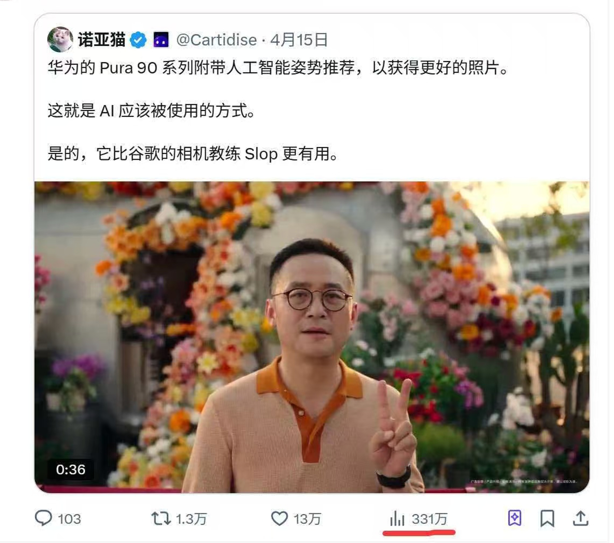 Pura 90系列上面那个AI拍照姿势,已经火到外网去了。海外网友表示:这就是AI应该被使用的方式。它比谷歌的相机教练Slop更有用。还没正式发布,先带给更多海外有人亿点点惊喜了。AI的不断进化和赋能,还可以开发出非常的可能。华为AI拍照姿势在外网火了这才是AI的正确使用方式