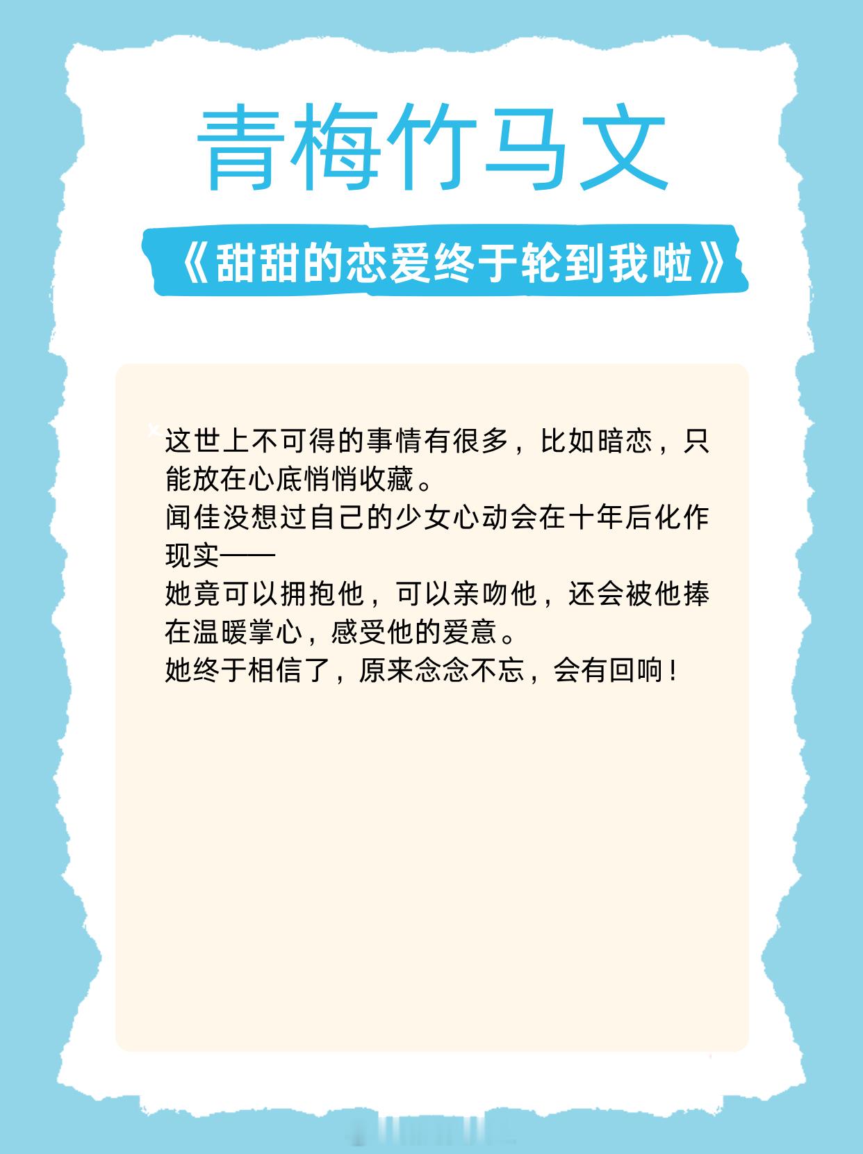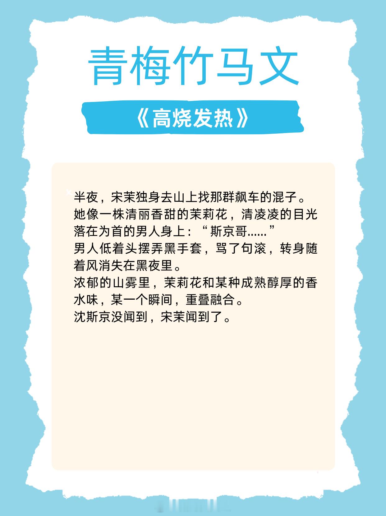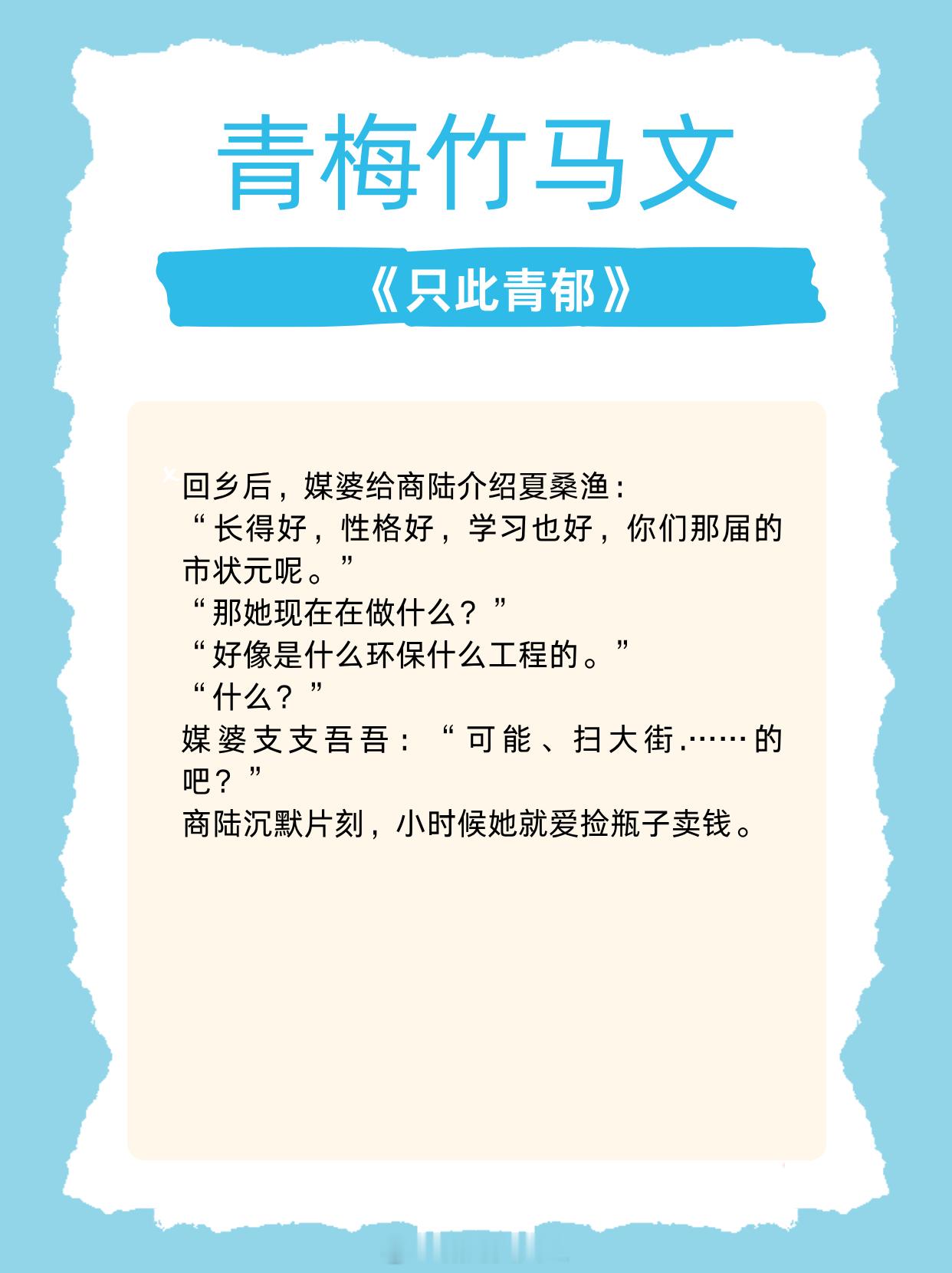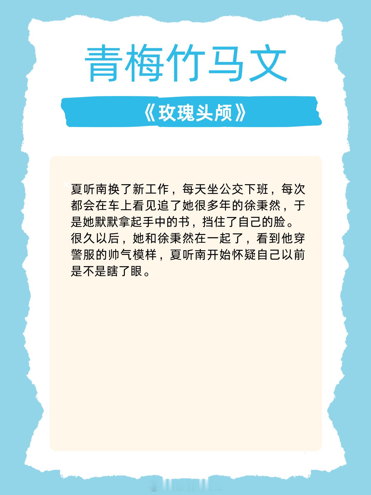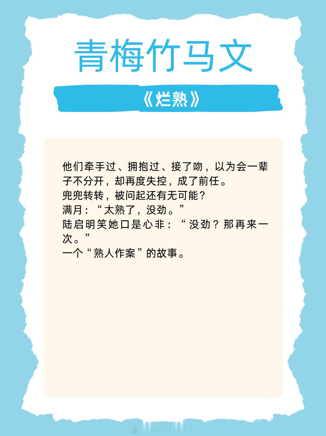 青梅竹马文,欢喜冤家,相爱相杀!1、《隔夜汽水》 作者:歪柒柒2、《高烧发热》 作者:菩萨野3、《甜甜的恋爱终于轮到我啦》 作者:结因4、《只此青郁》 作者:青耳5、《玫瑰头颅》 作者:诀别词6、《烂熟》 作者:芝喜兜兜转转还是这些小说好看 老牌小说作者的含金量谁懂