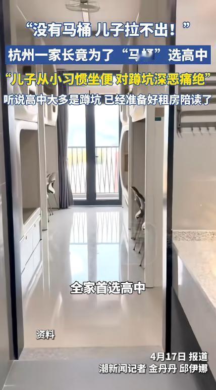 (信息来源:潮新闻《“没有马桶,儿子拉不出!”杭州一家因马桶锁定高中,今年填中考志愿前,不少家长都在关心这事:不是舍不得孩子吃苦,是没必要没苦硬吃》)
