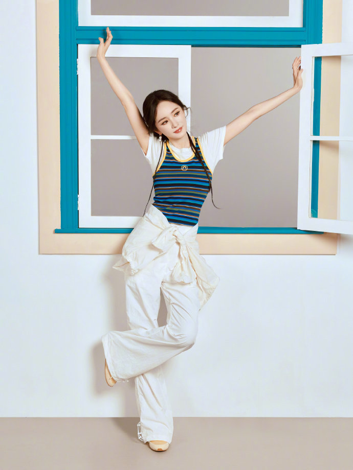 杨幂条纹叠穿杨幂编发学姐造型 杨幂编发学姐造型,条纹叠穿漂亮晕晕了