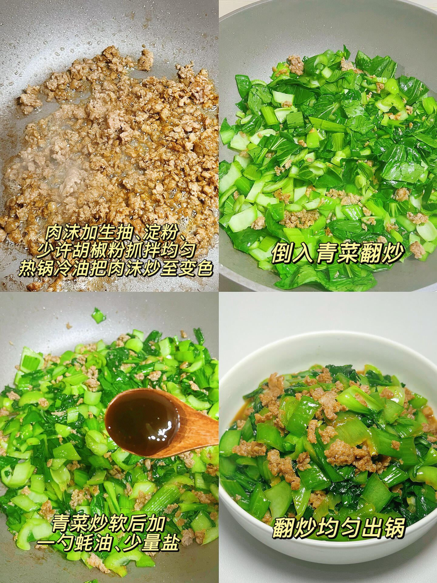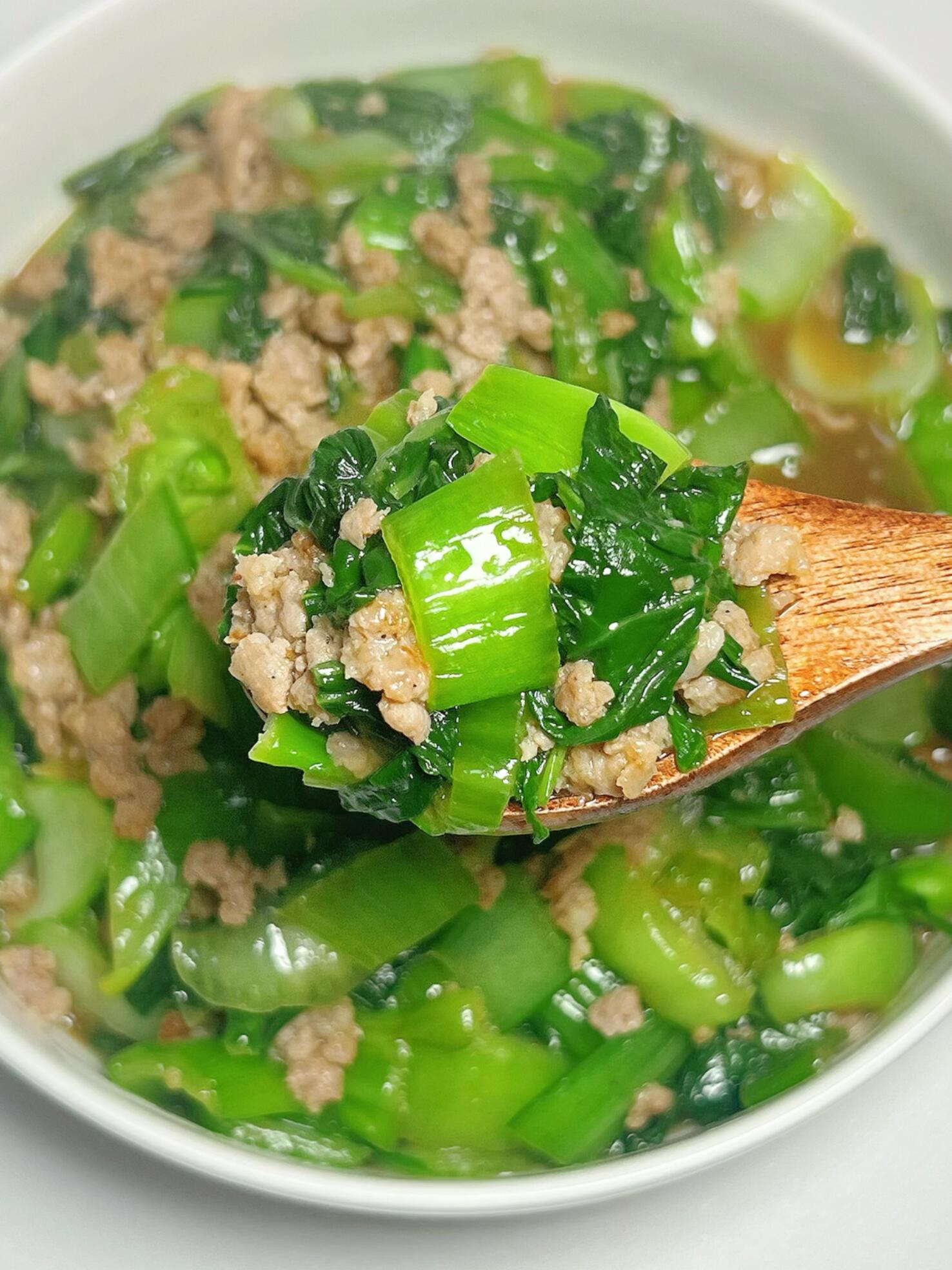 没有复杂步骤,新手也能零失败,脆嫩的青菜吸足了肉末的鲜香,每一口都清爽不腻,肉沫咸香不柴,减脂期也能吃得满足又无负担~