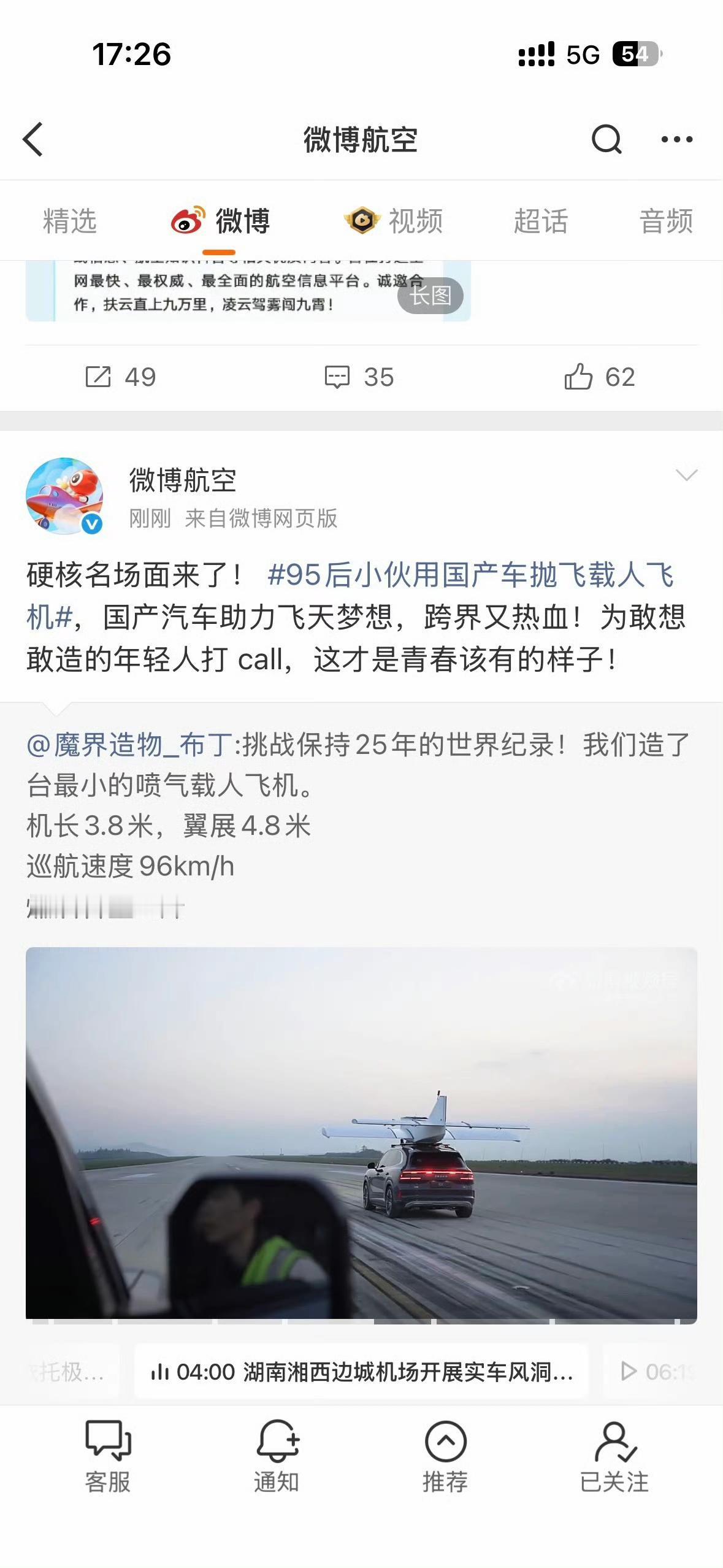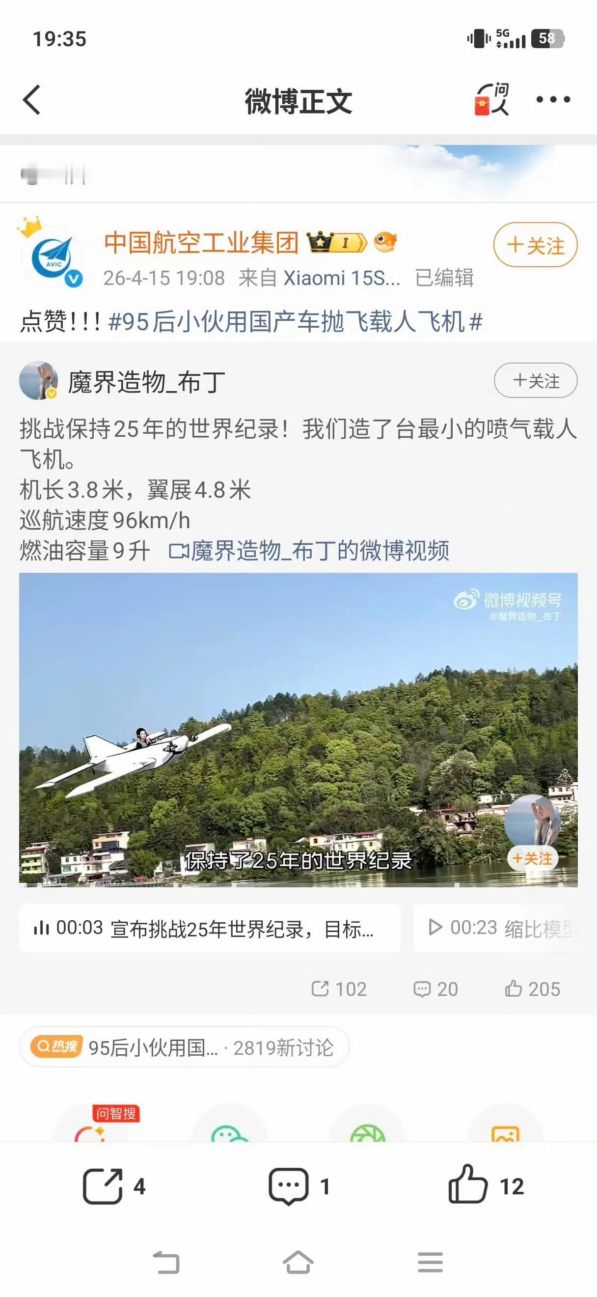 看到一个手工博主,开着一辆极氪8X,驮着一驾喷气式飞机,达到起飞速度后起飞。95后小伙用国产车抛飞载人飞机