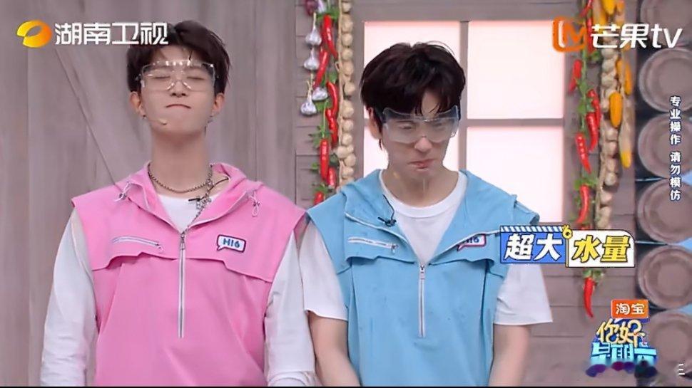 范丞丞长脖子优势赢麻了玩游戏躲喷水全靠长脖子buff,范丞丞一点没被淋到,妆发纹