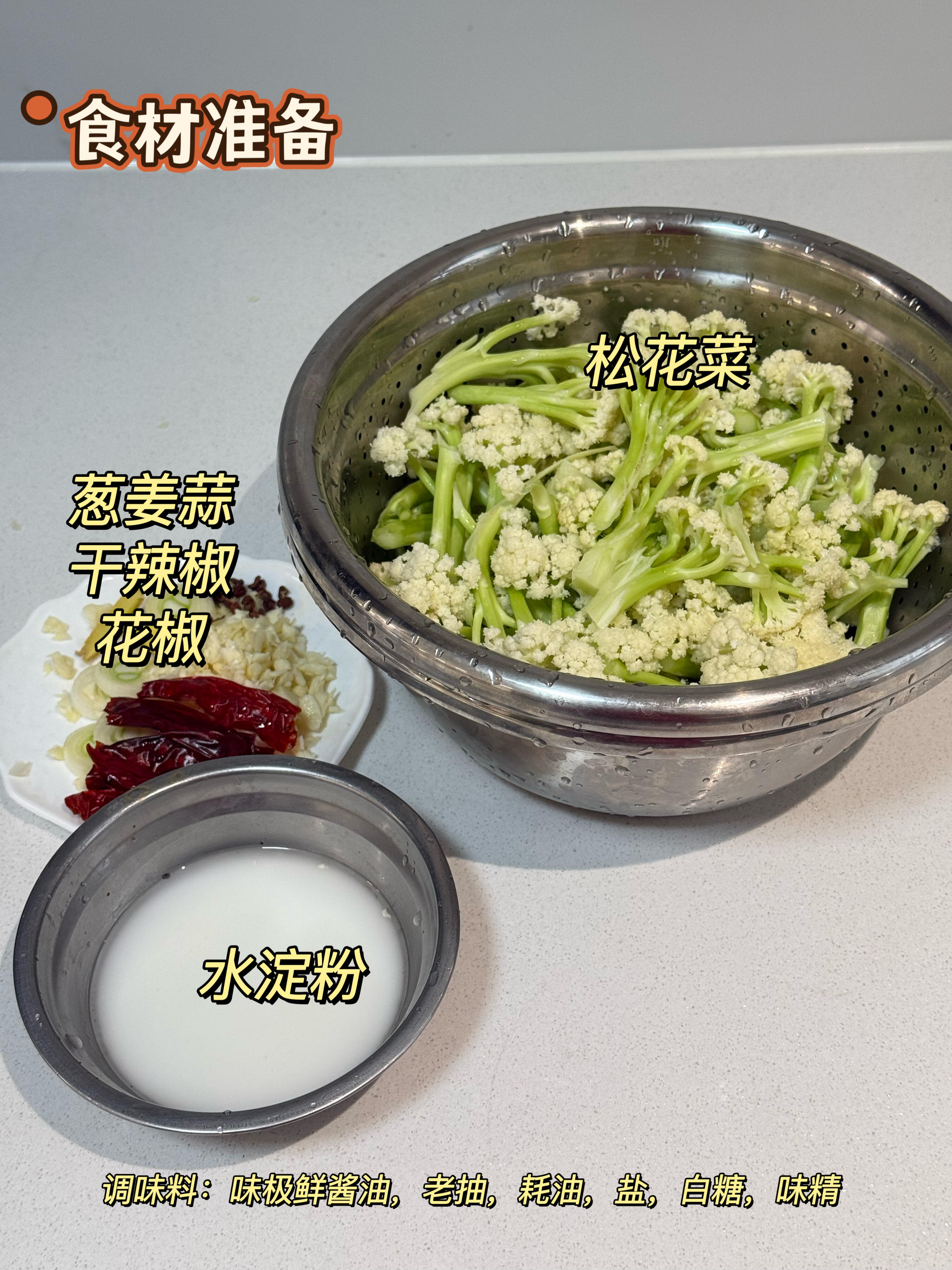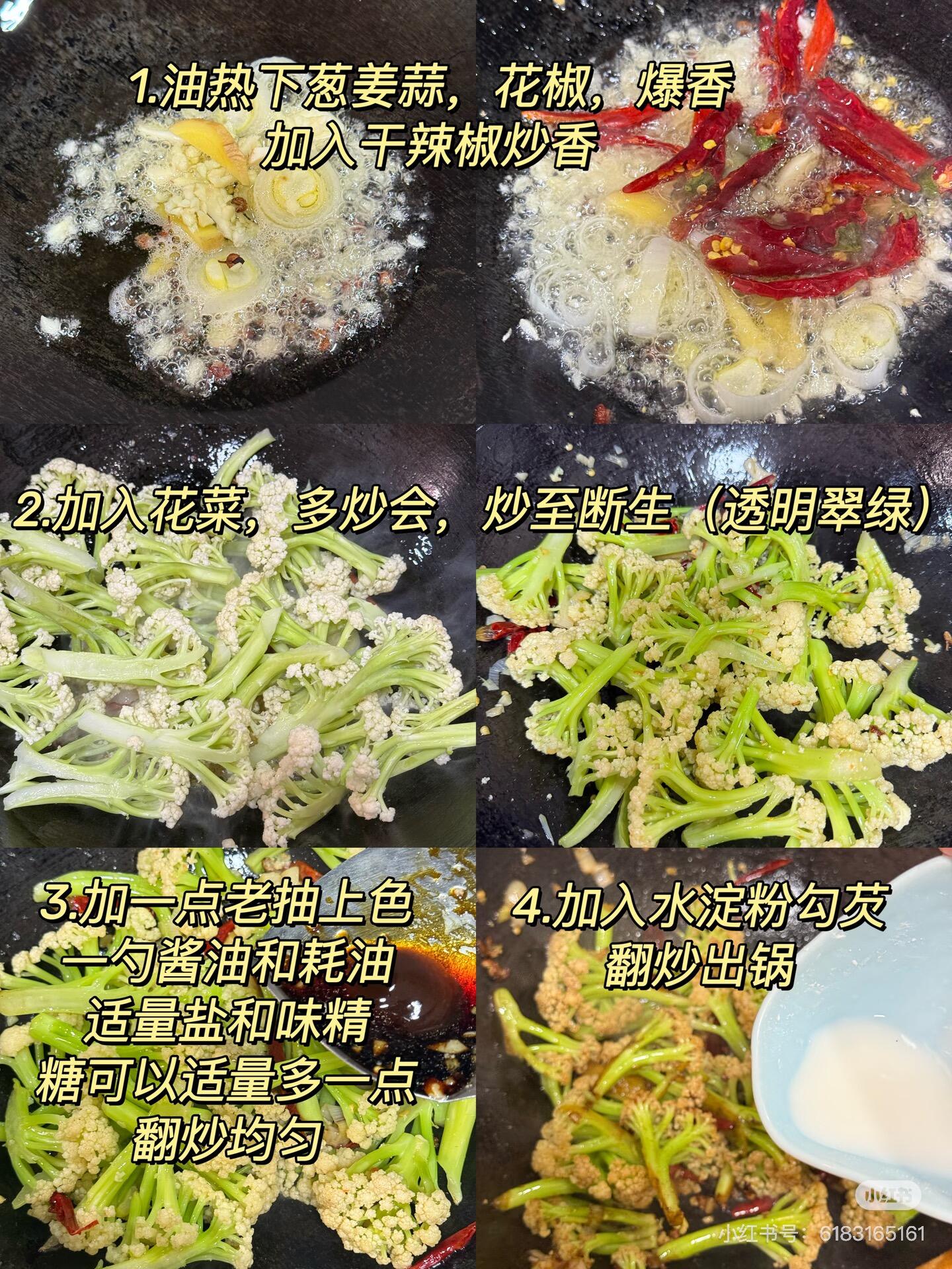 🥦食材:花菜,干辣椒,葱姜蒜,花椒,水淀粉