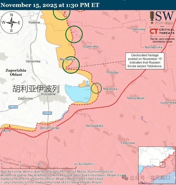 俄军还占领扎波罗热州亚布卢科夫,并从东面逼近韦塞莱、泽列尼盖和维索克,俄军距离胡利亚伊波列越来越近。