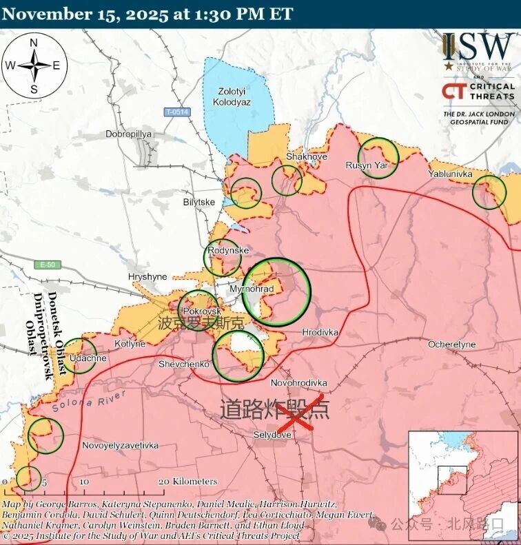 战争研究所(ISW)给出更谨慎的结论,波克罗夫斯克-米尔诺赫拉德的攻击加剧,俄罗斯仍在推进。