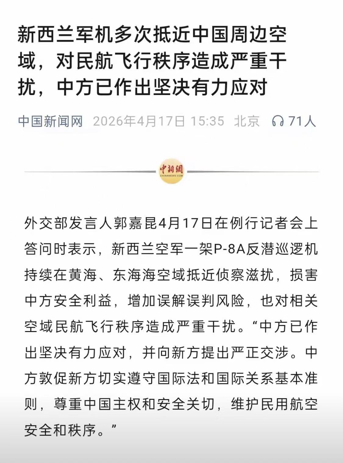 新西兰弹丸小国敢来,主要因为背后有美国撑腰,自己成本低、风险可控。但这改变不了地理现实:中国在家门口有绝对的防御纵深和反应能力。长期看,这种摩擦会增加误判风险,对谁都没好处。新西兰如果真想“独立外交”,该平衡好经济利益和盟友压力,而不是一味跟风当“马前卒”。中国继续做好自己的事,实力到了,自然没人敢随便“耀武”