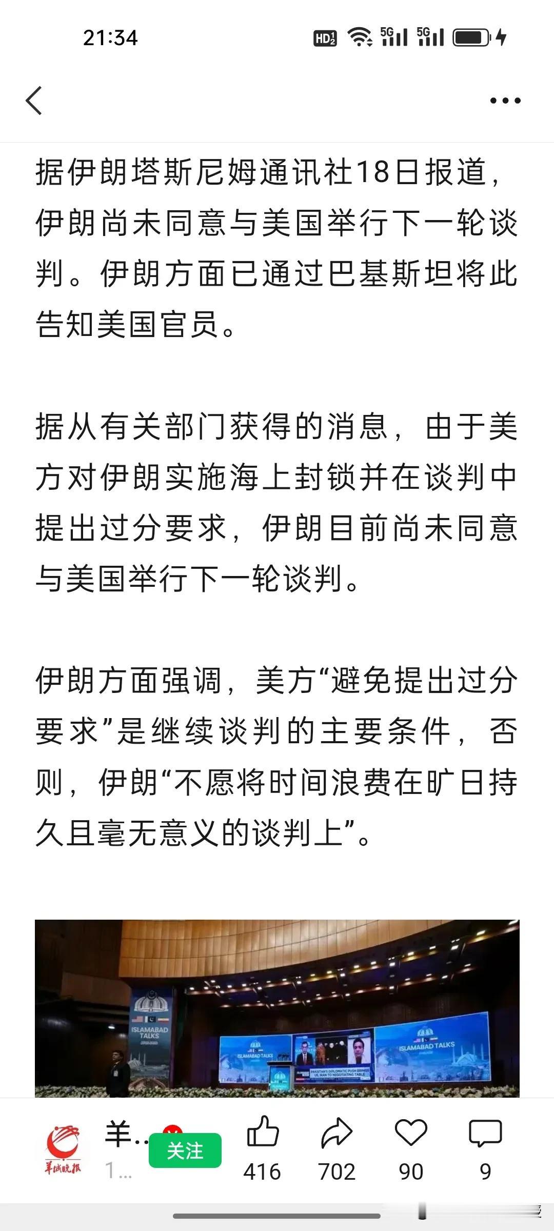 刚刚,伊朗放话:不谈了!特朗普刚宣称最快本周末重启的伊美谈判,被伊朗一句话彻底终结。伊朗直接通过巴基斯坦传话美国:不谈了,因为你们一边海上封锁,一边漫天要价,这种“毫无意义的谈判”,不值得浪费时间。