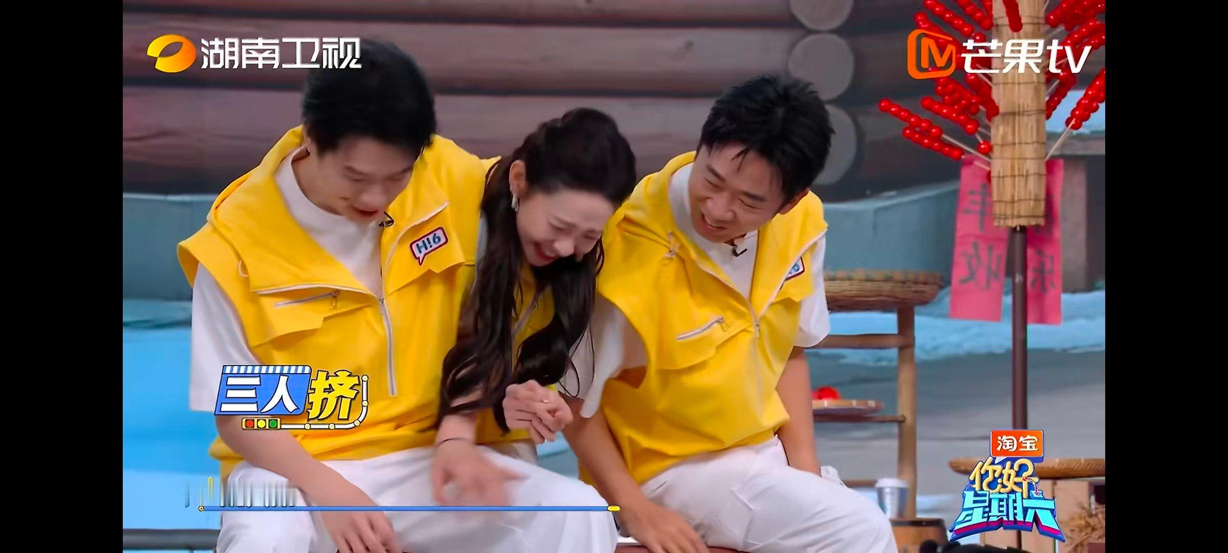 张艺凡三个人的世界太拥挤 你好星期六张艺凡好不容易冲到座位旁,直接被两大巨头锁死空间,小小一只好委屈