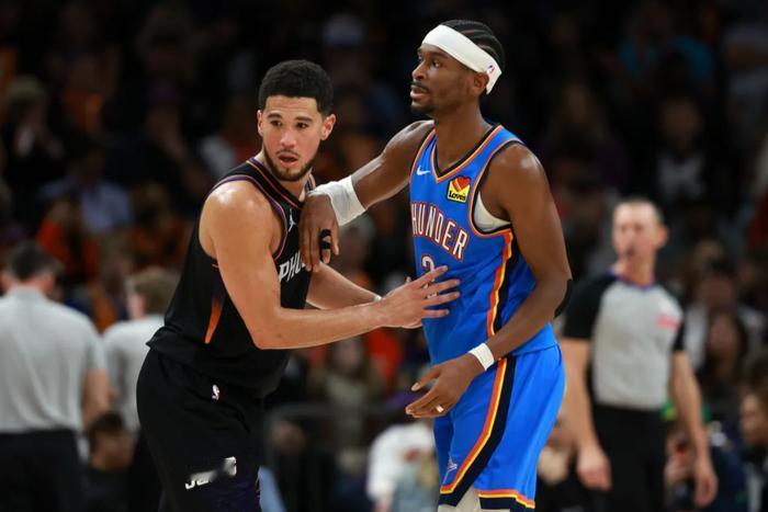 第二个,布克或者杰伦-格林,如何破解雷霆的严密包夹,无论是布克,还是杰伦-格林,只要一拿球,雷霆必定是会祭出严密包夹的战术,特别是布克,他并不是很擅长破包夹的,当然,杰伦-格林还不如布克,也就是说,一旦布克或杰伦-格林陷入雷霆的严密包夹,那么太阳的进攻体系就会出现问题,得分也是要比常规赛的场均得分112.6分要低一些的,事实上,本赛季的太阳,场均112.6分算不上太好的,仅排在NBA第26位。