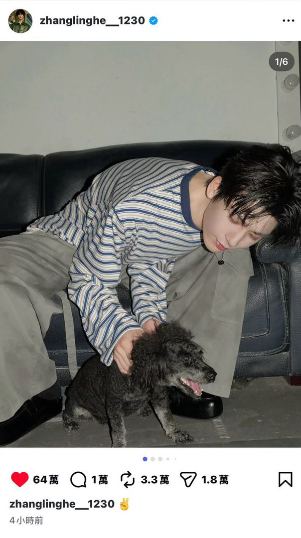 张凌赫ins更新,4小时64w了,海内外都爱帅哥啊