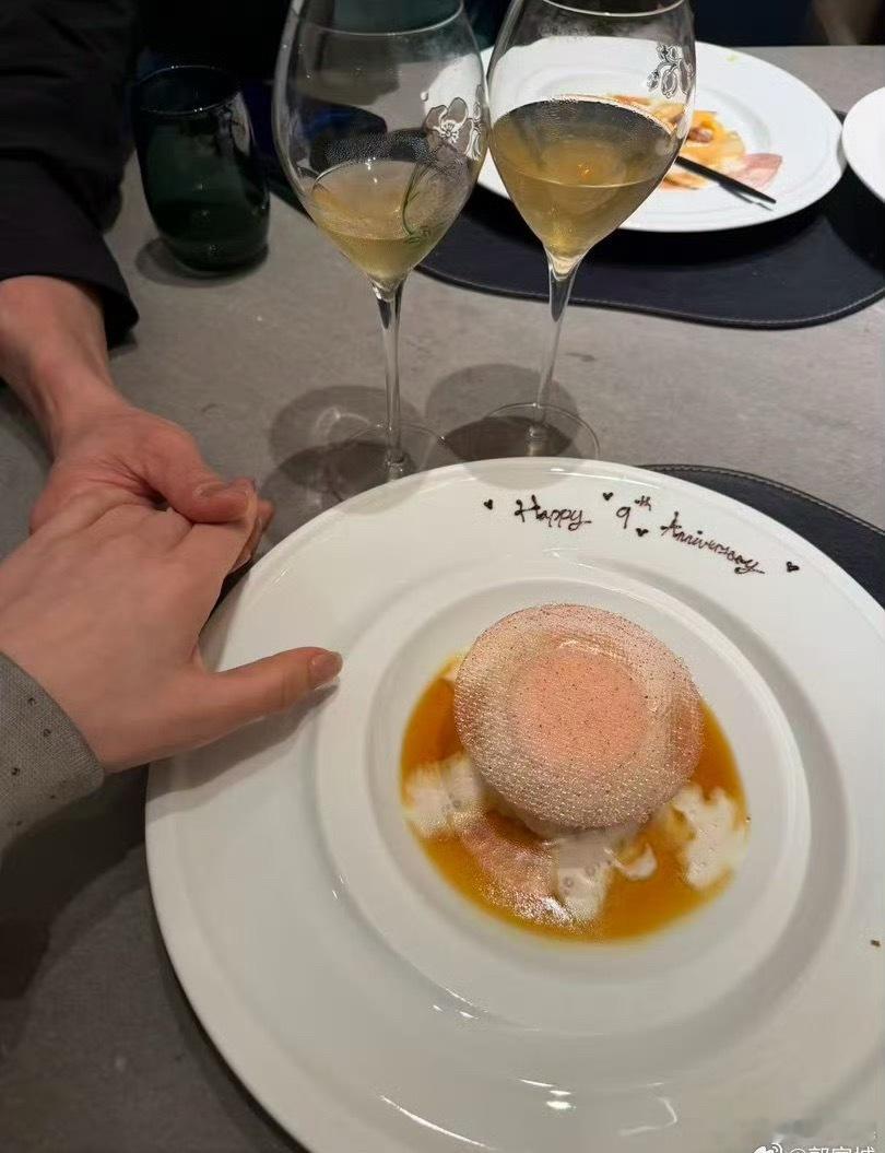 郭富城晒结婚9周年约会照郭富城晒结婚9周年合照郭富城晒结婚9周年约会照,方媛歪着头和老公倚靠在一起,吃西餐还要拉着手,比小情侣们还恩爱,老郭手指比9,细节十分浪漫啊!