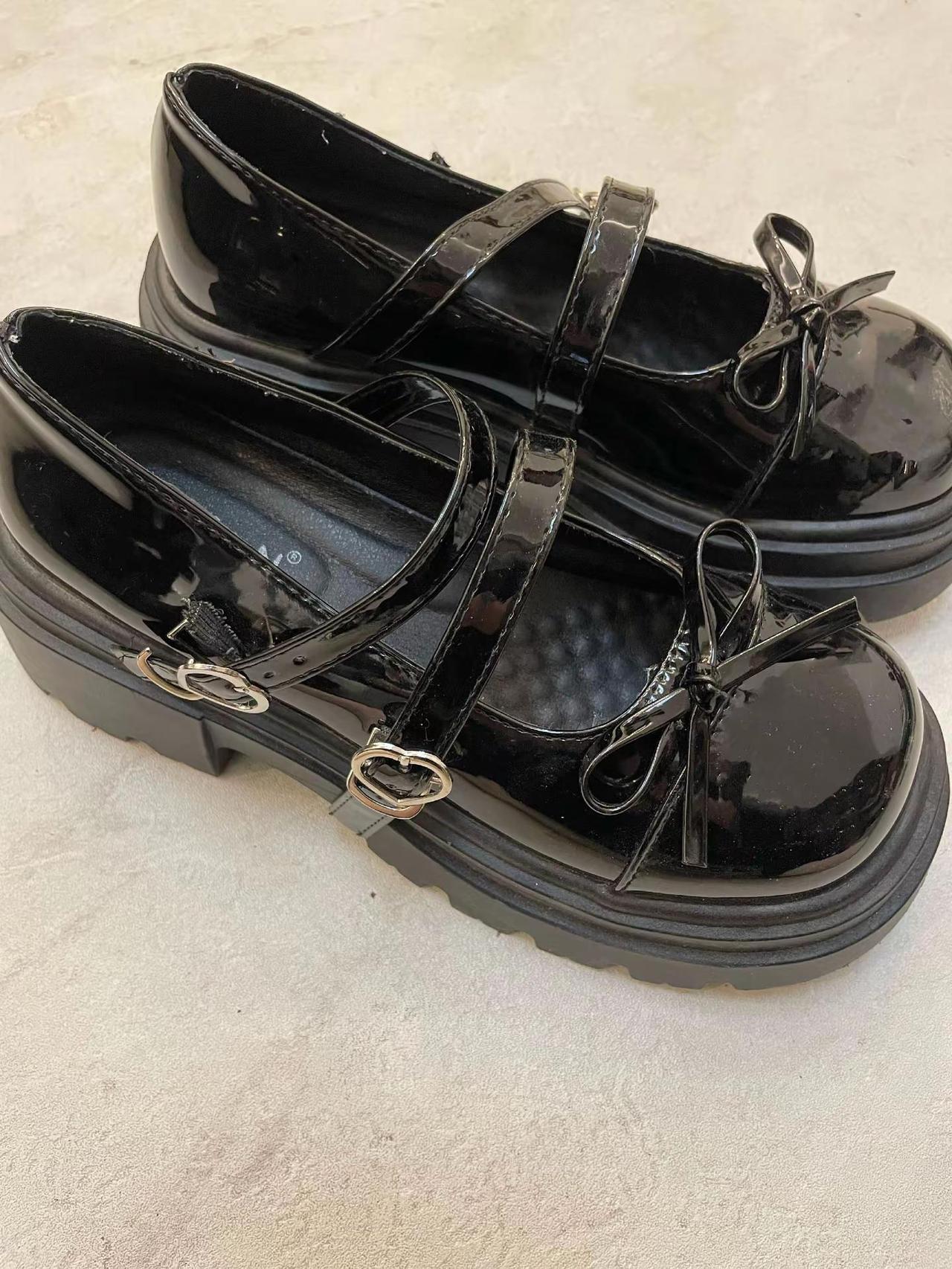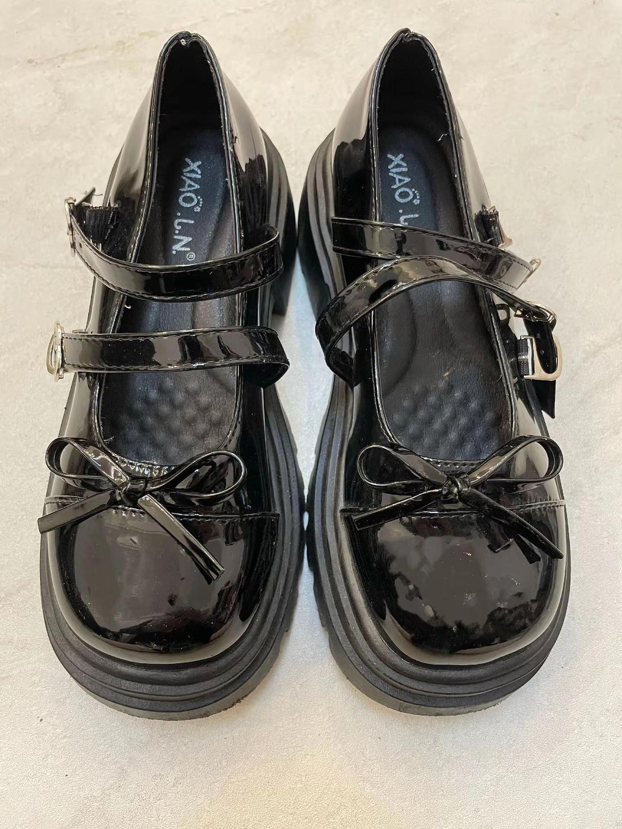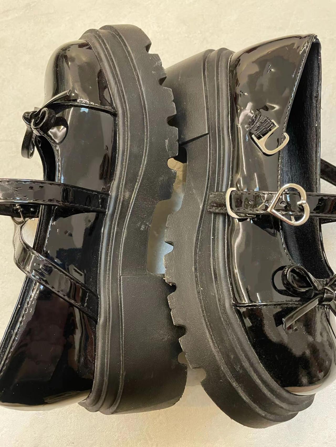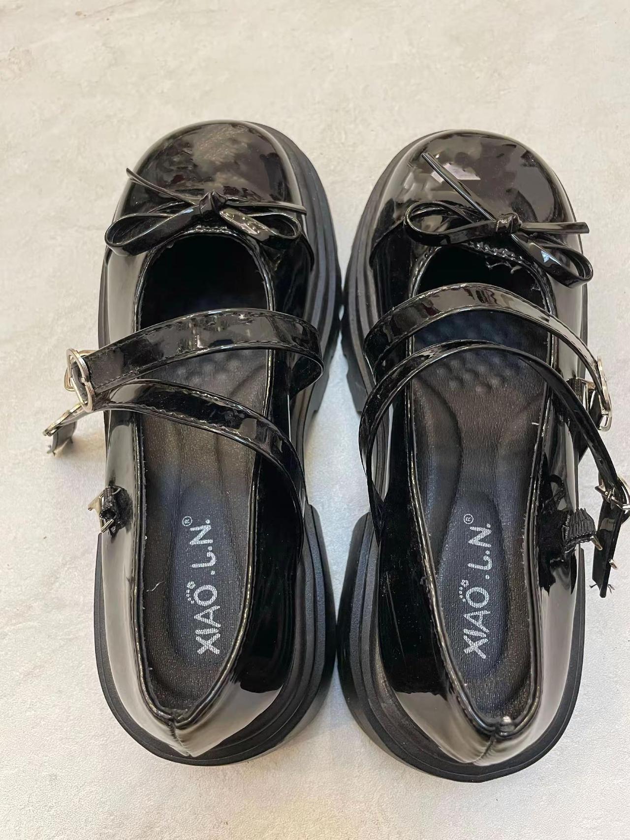 女大学姐黑色厚底玛丽珍lo鞋。玛丽珍