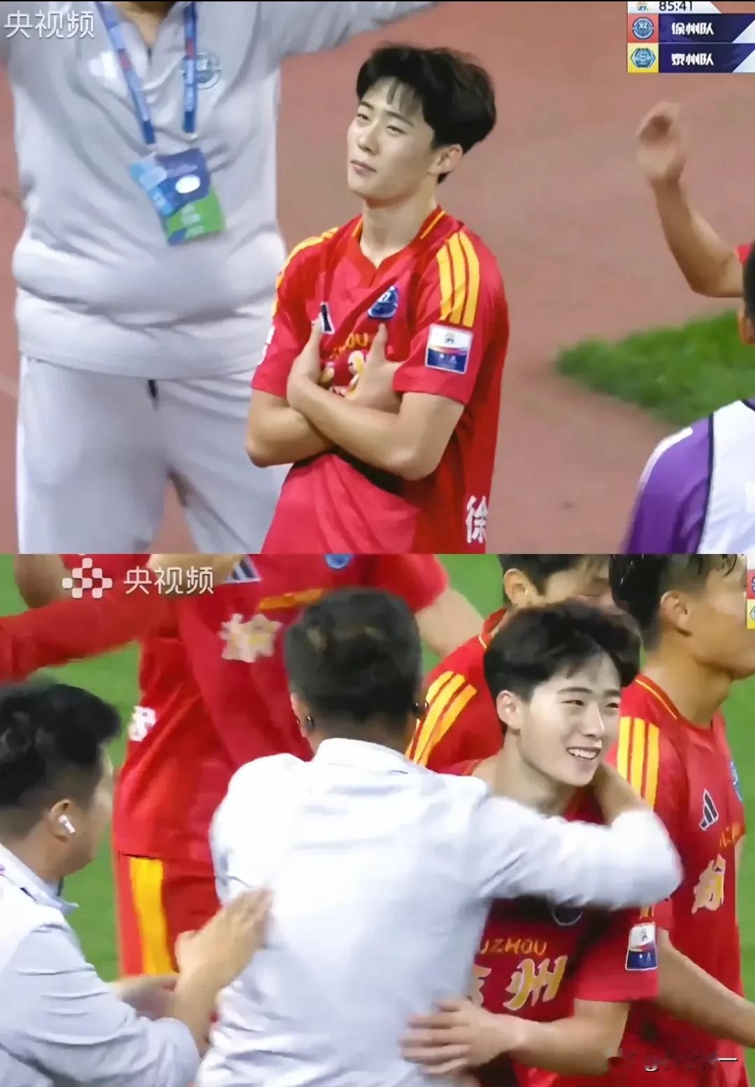 当晚同一场徐州对战泰州,不到19岁的苗润东就为徐州踢进2球,比赛3:0胜利,不止实力强劲,长相也颇为俊朗帅气!