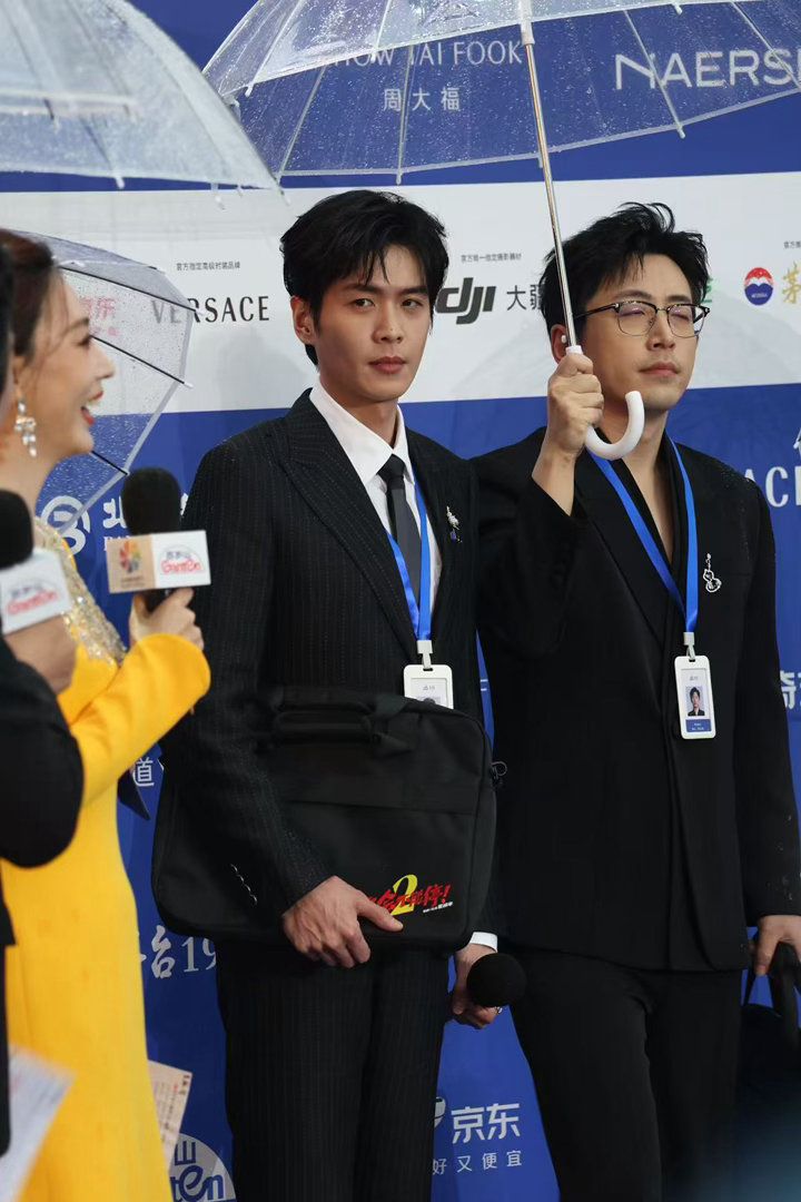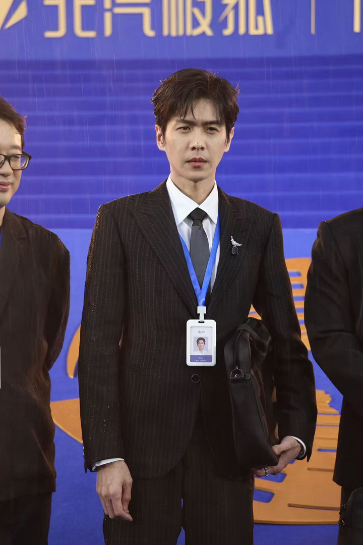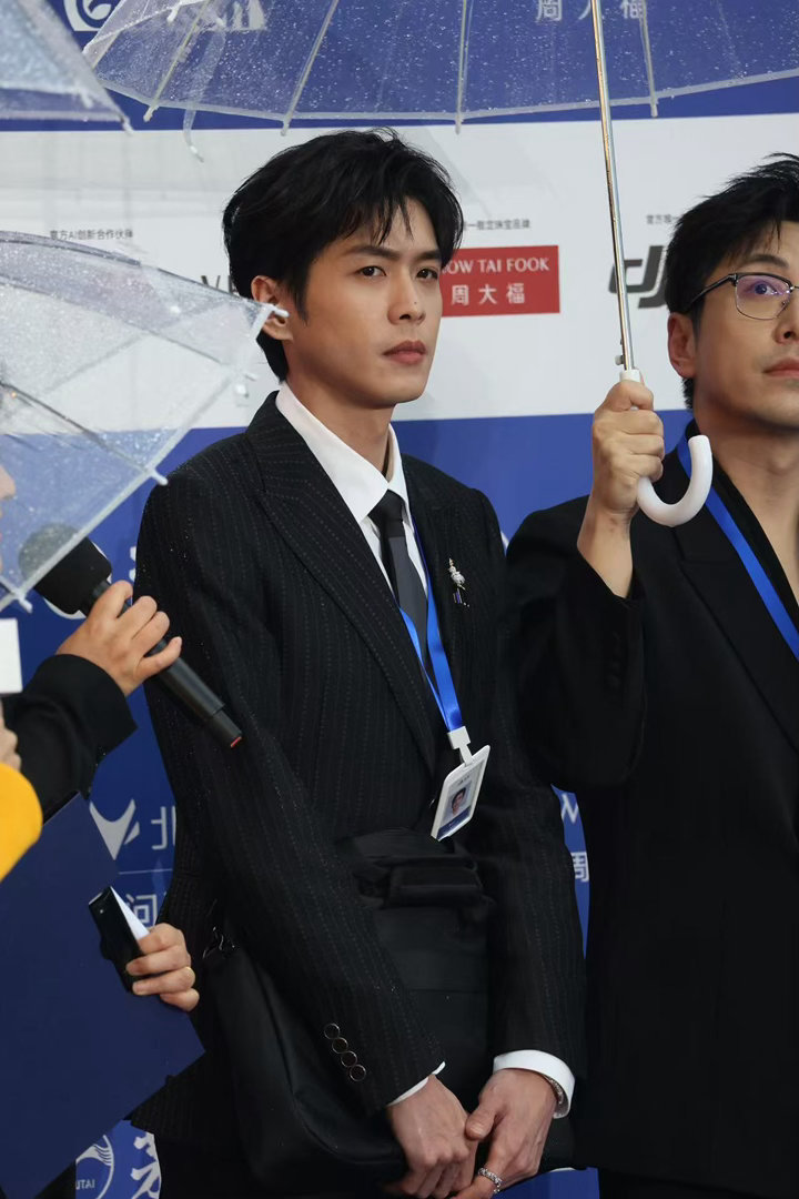 张若昀北京国际电影节北京电影节开幕式张若昀 张若昀一身条纹西装亮相北影节红毯,大雨也没有浇灭他的热情,让我们一起期待电影《年会不能停2》 !!!
