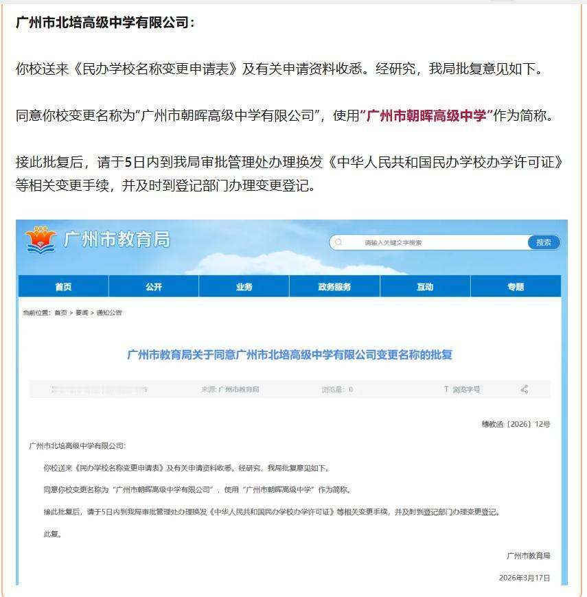 截止到2026年4月18日,广州市已经有2所民办高中改名,你了解多少?