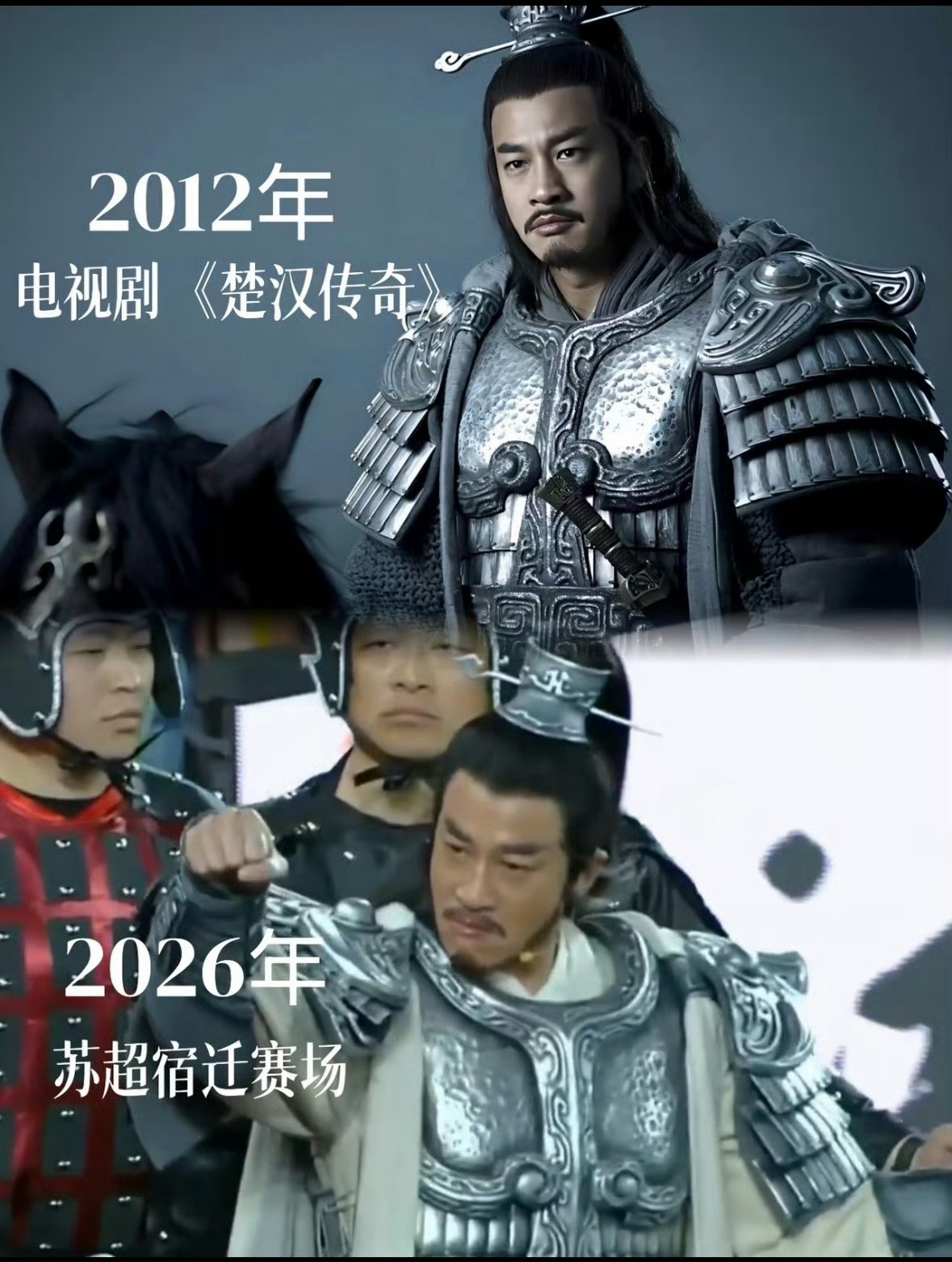 4月18日晚,2026苏超联赛,何润东化身“西楚霸王”坐镇下,宿迁队踢出气势,宿迁2-0完胜南京,完美复仇,宿迁男儿不输任何人。