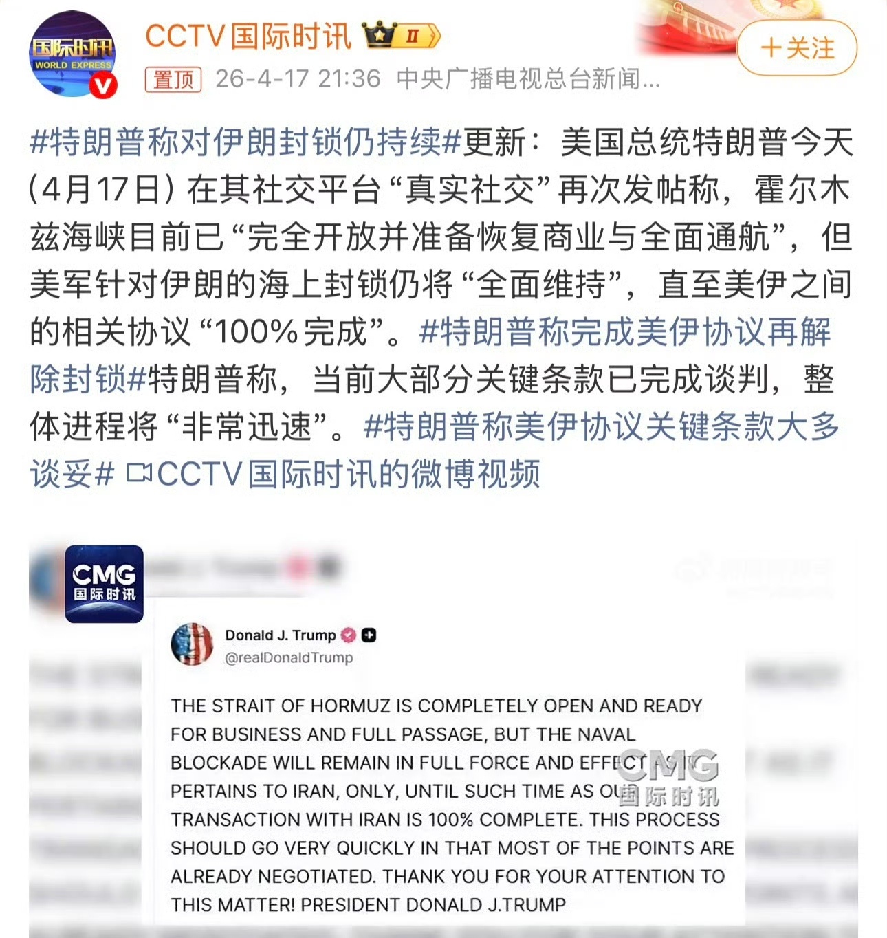 近日,伊朗本已做出让步,宣布霍尔木兹海峡对所有商船完全开放,但特朗普却表态,美军