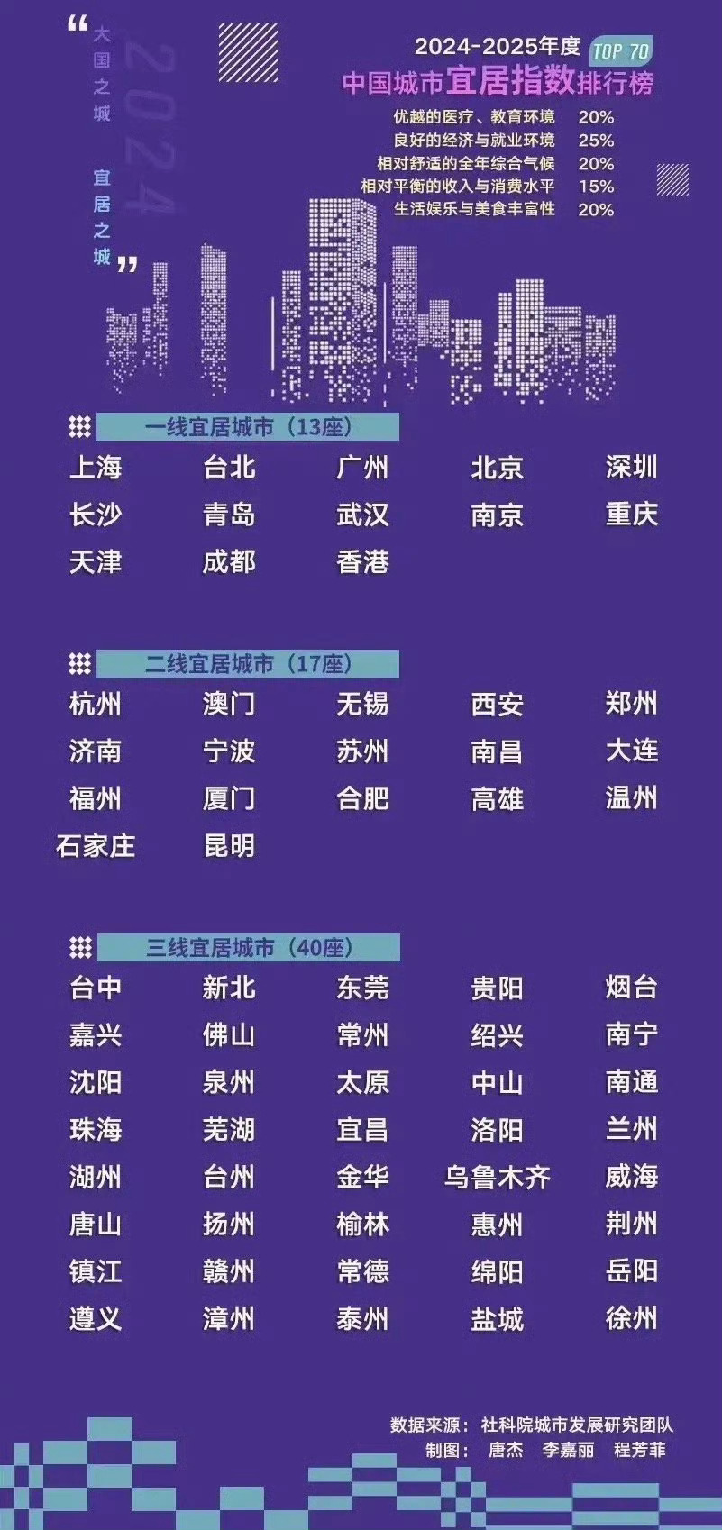 中国城市宜居水平排行榜除了北上广深外,别的是不是都还可以