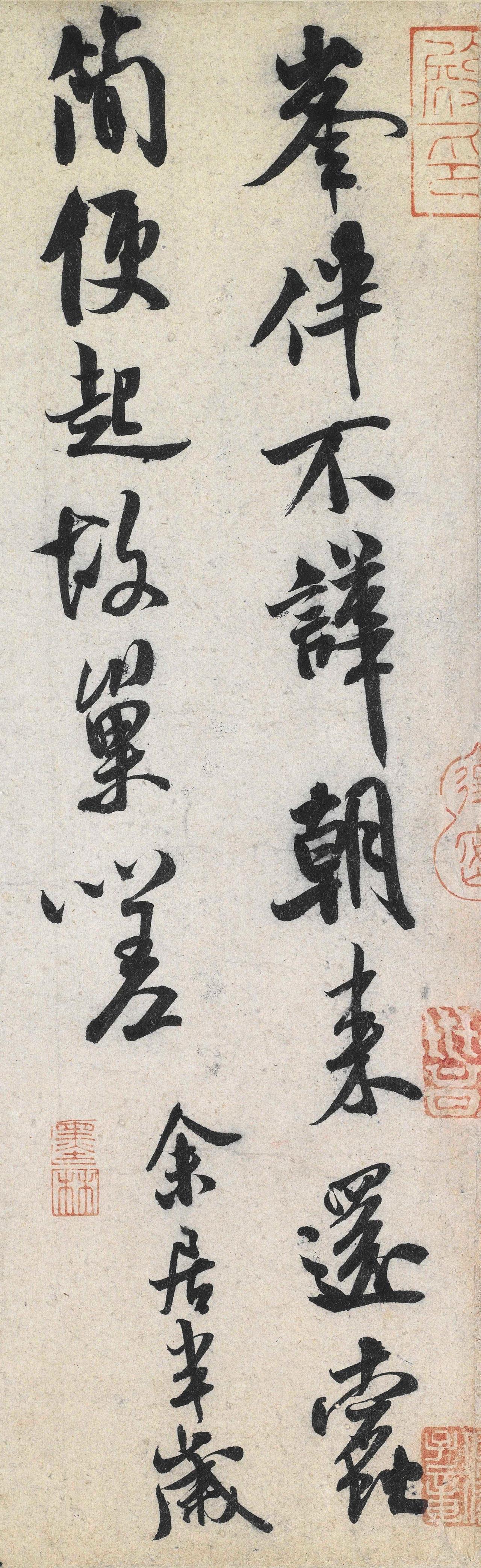 用笔上,中锋比例比《蜀素帖》高,线条圆劲沉着,跟《蜀素帖》大量用侧锋正好互补。两件一对,能看出他在同一时期对两种笔法的掌握都到了火候。