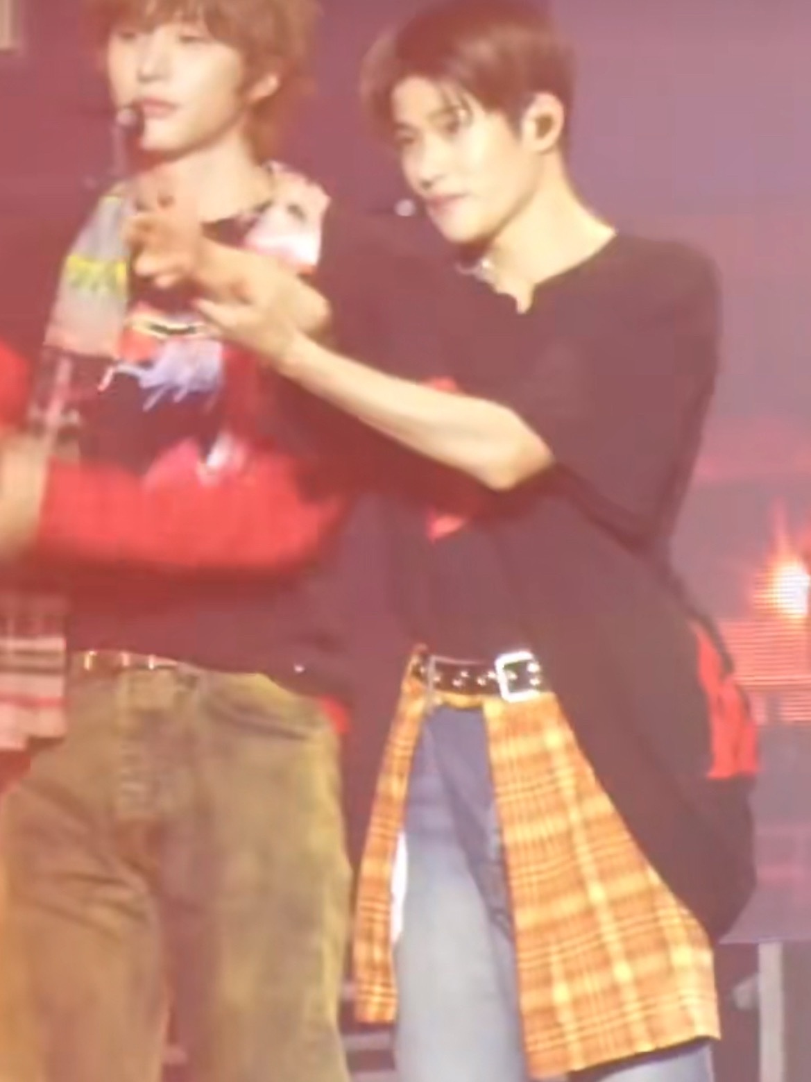 王濛的衬衫竟然不是一件拼接衬衫,而是用两件衬衫合在一起的,淡粉配淡蓝