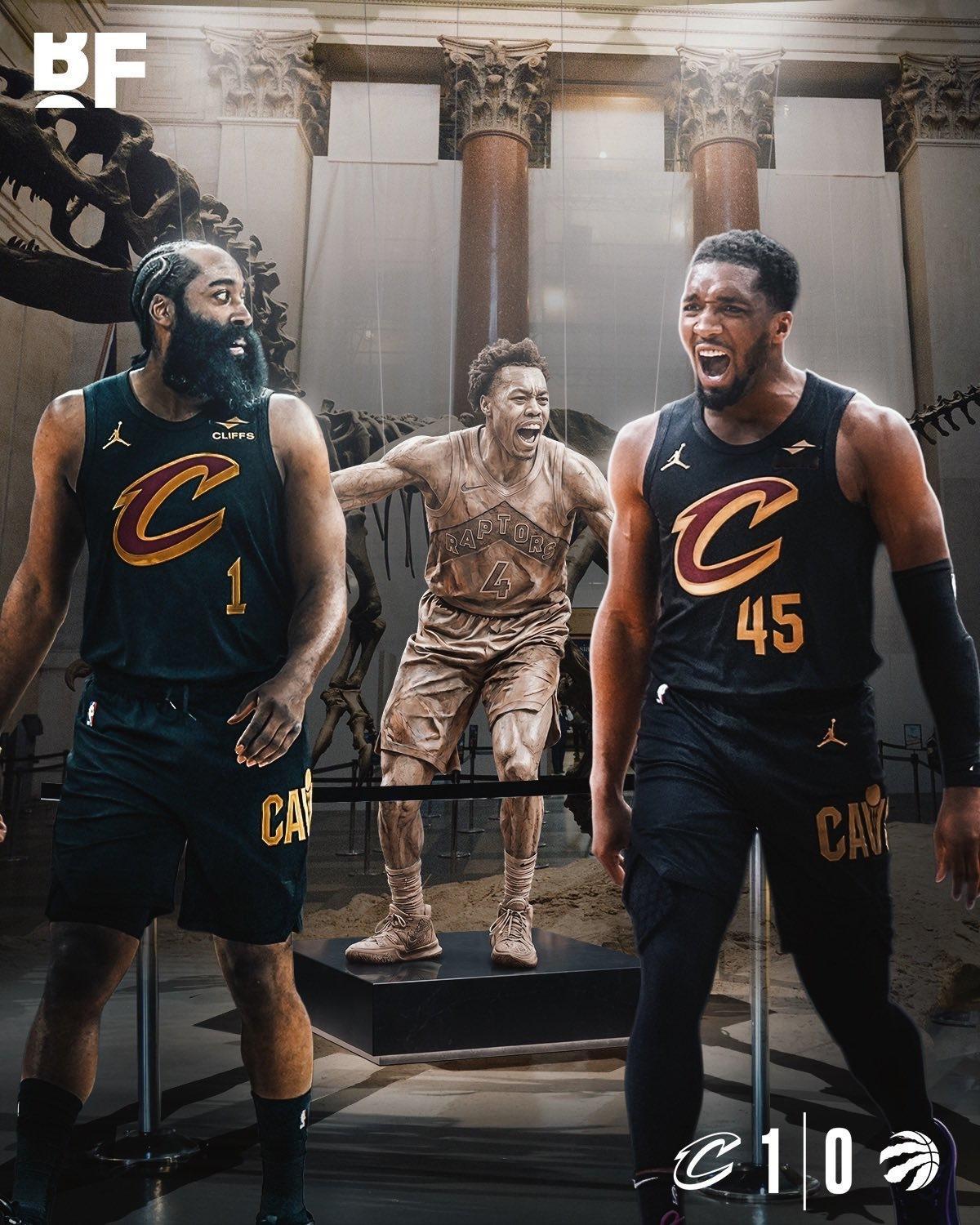 米切尔+哈登+斯特鲁斯合砍78分,骑士大比分1-0猛龙!
