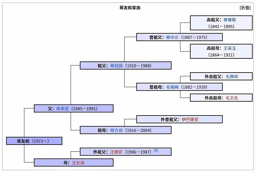近期在网上有关于“蒋友松宣布启动两蒋移灵程序”的说法,蒋友松是谁?——蒋介石的长曾孙,蒋经国的长孙,蒋孝武的独子,是蒋家第四代的核心成员之一。1973年生于台湾,赴美留学获硕士学位后,主要从事风险投资等商业活动,长期远离政坛。其早年奔丧时就曾向媒体表示“蒋家第四代不会从政”。