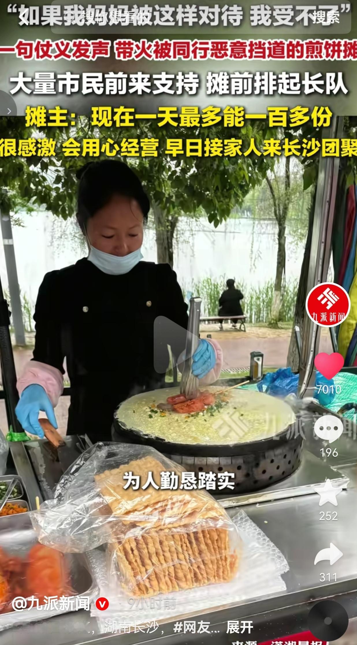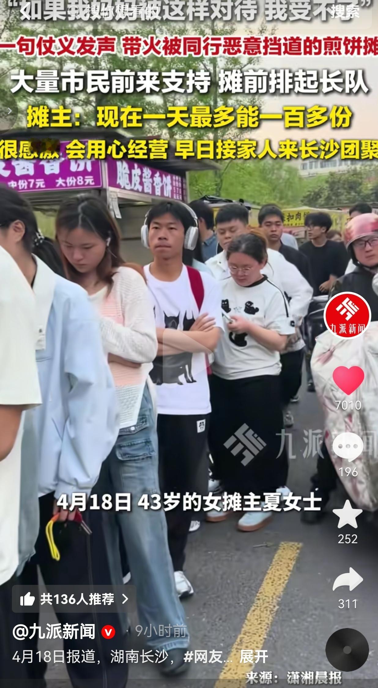 帖子火了之后,整个长沙的人都来给夏姐撑腰了。大家排着队买她的煎饼,不为别的,就为给这个老实本分的女人争口气。