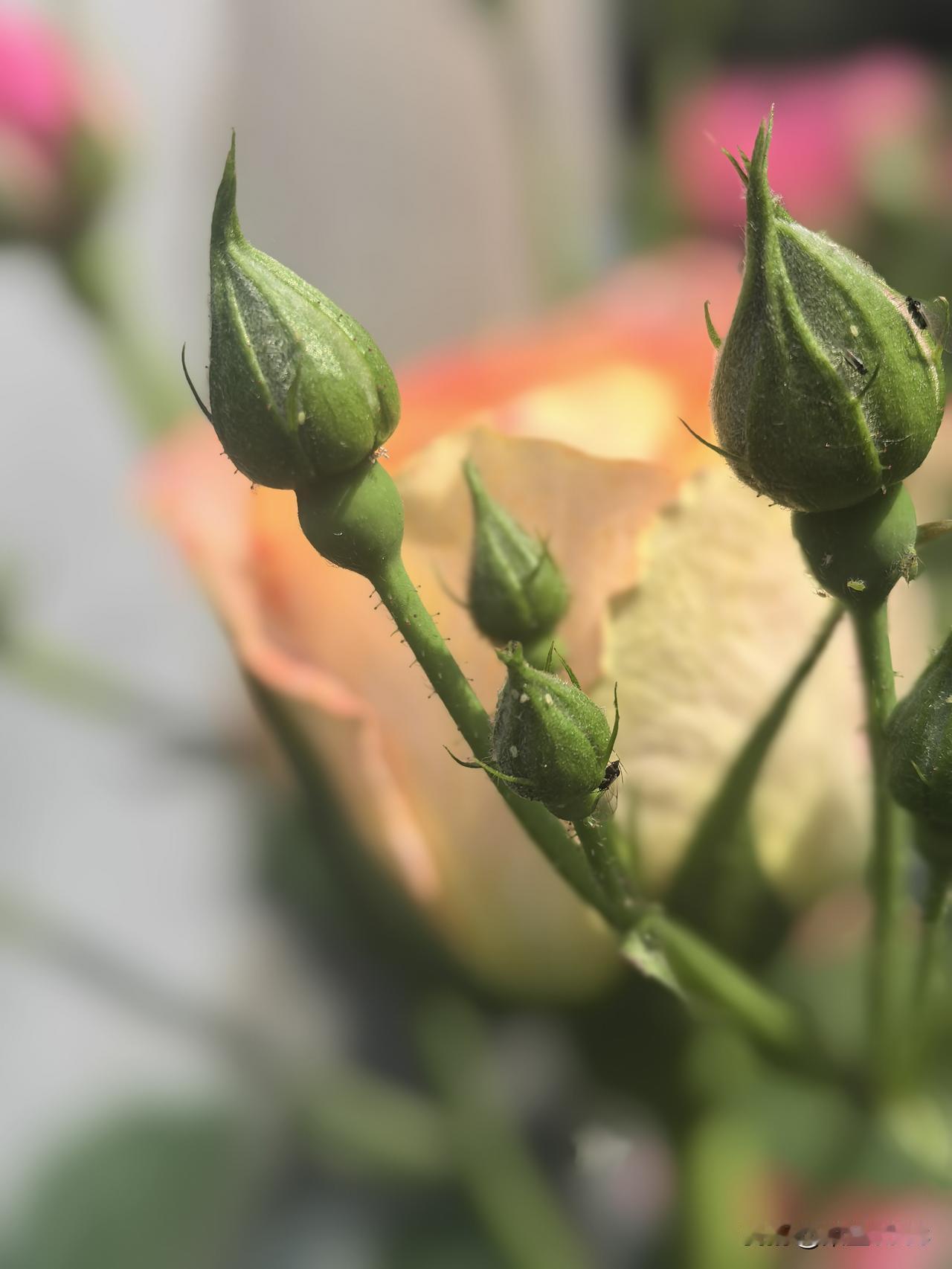 而月季则隐隐藏于蔷薇之间,特别是那些明黄色橙色像一盏盏明灯,光彩夺目。