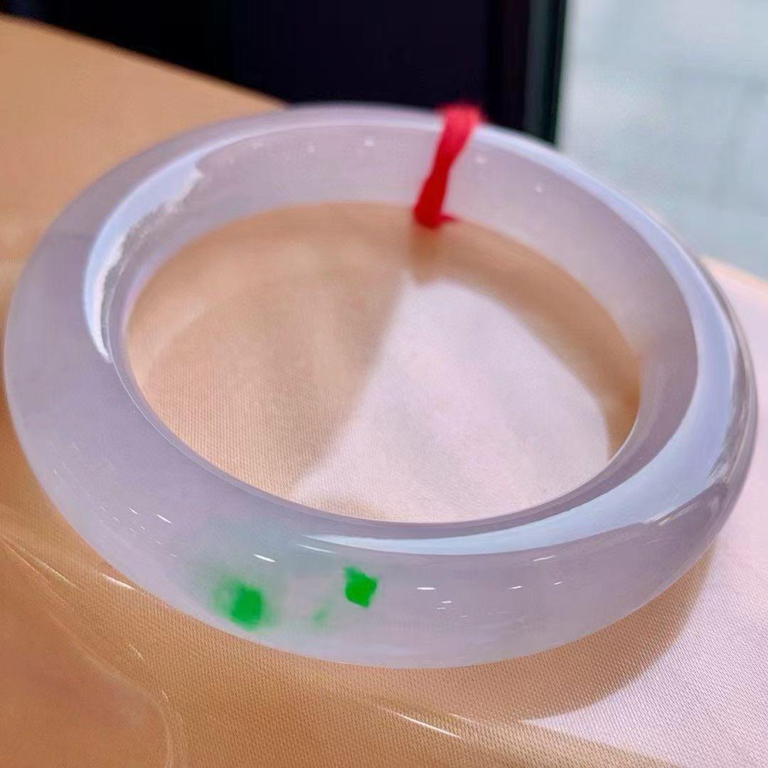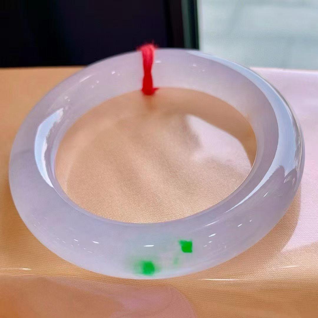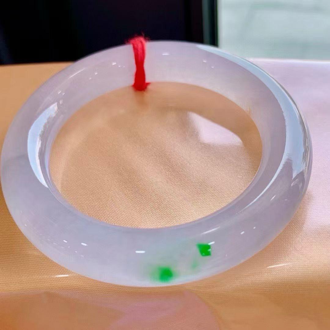 高冰飘绿正圈手镯,通透起胶,完美小七价,大圈口59.7*18.2*9mm对庄询