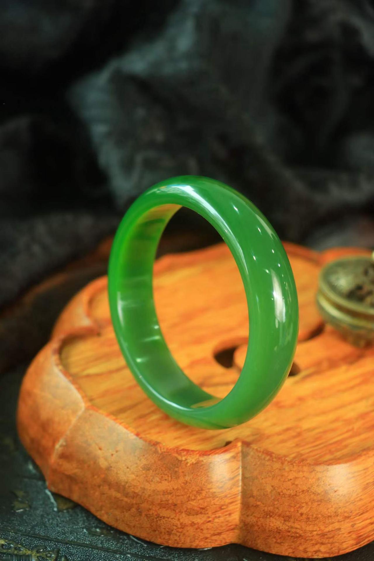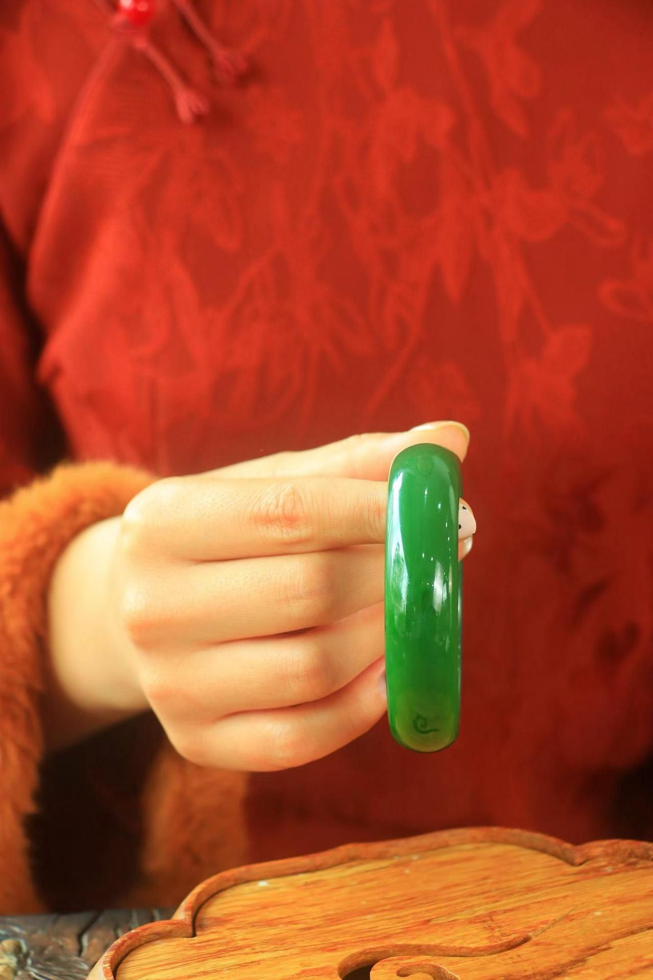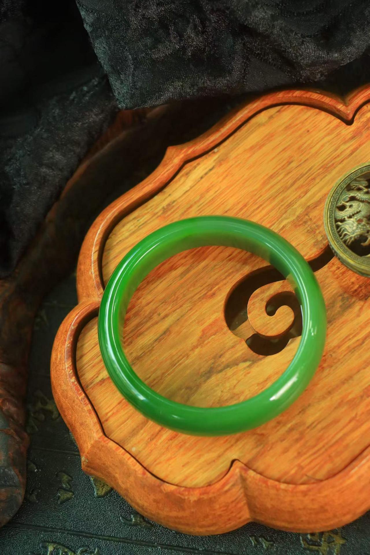 ·〈芳年华月 玉镯〉 精品玉镯❤️ 和田玉碧玉镯,佩戴高贵优雅~色泽怡人,干净均匀,温润素雅,完美品相自然呈现,精细打磨,更见和泽光辉,恰如大家闺秀,温雅持重🍁 规格:宽17厚8圈口59.5重67.1