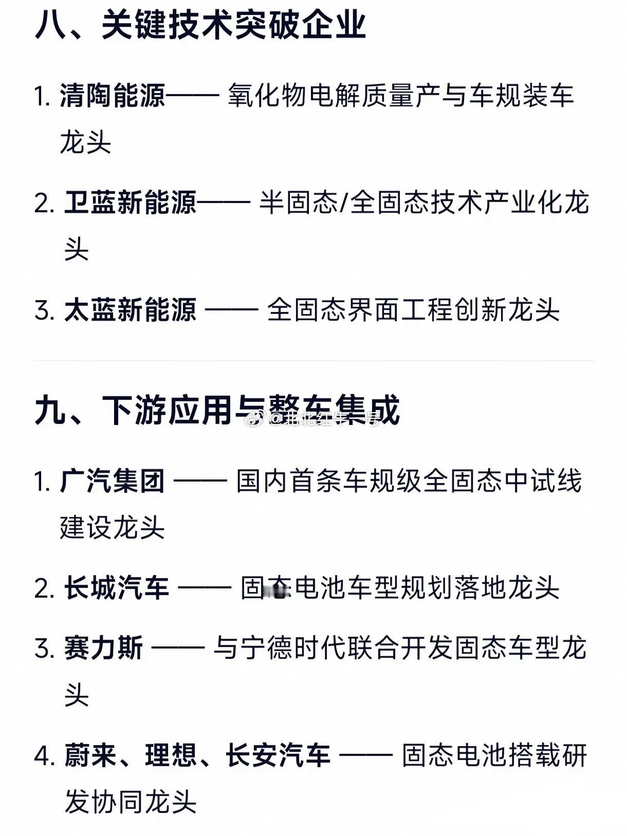 蔚来、理想、长安汽车 —— 固态电池搭载研发协同龙头