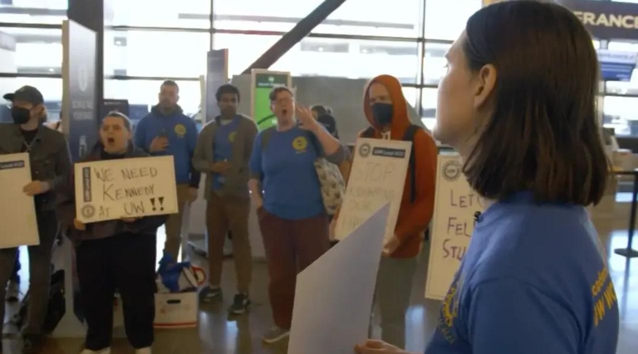 华大的研究生工会很快就得知了消息,急得不行,赶紧组织了一批人赶往机场,想试着阻止遣返,还在机场举牌抗议,要求让博士回来。