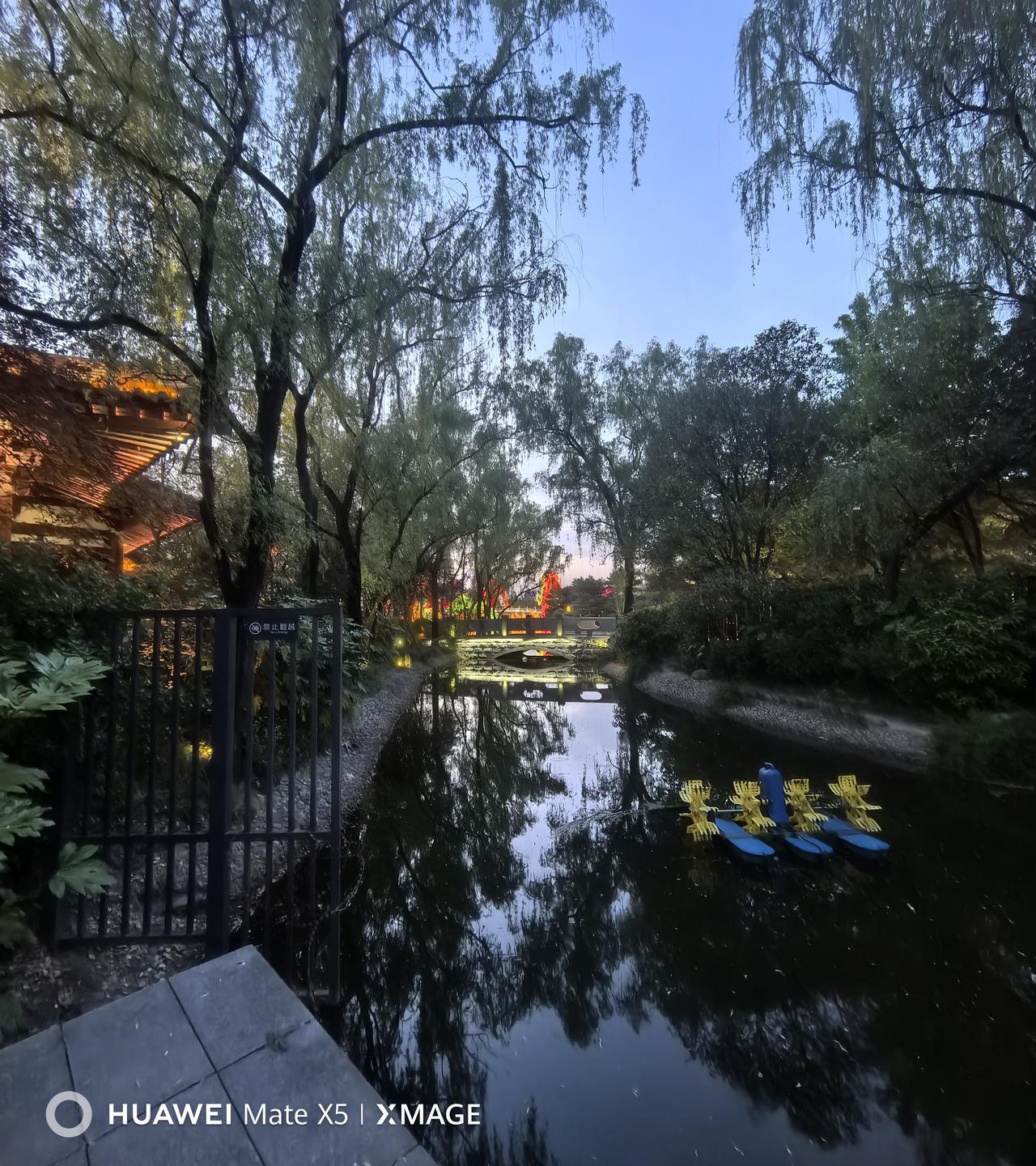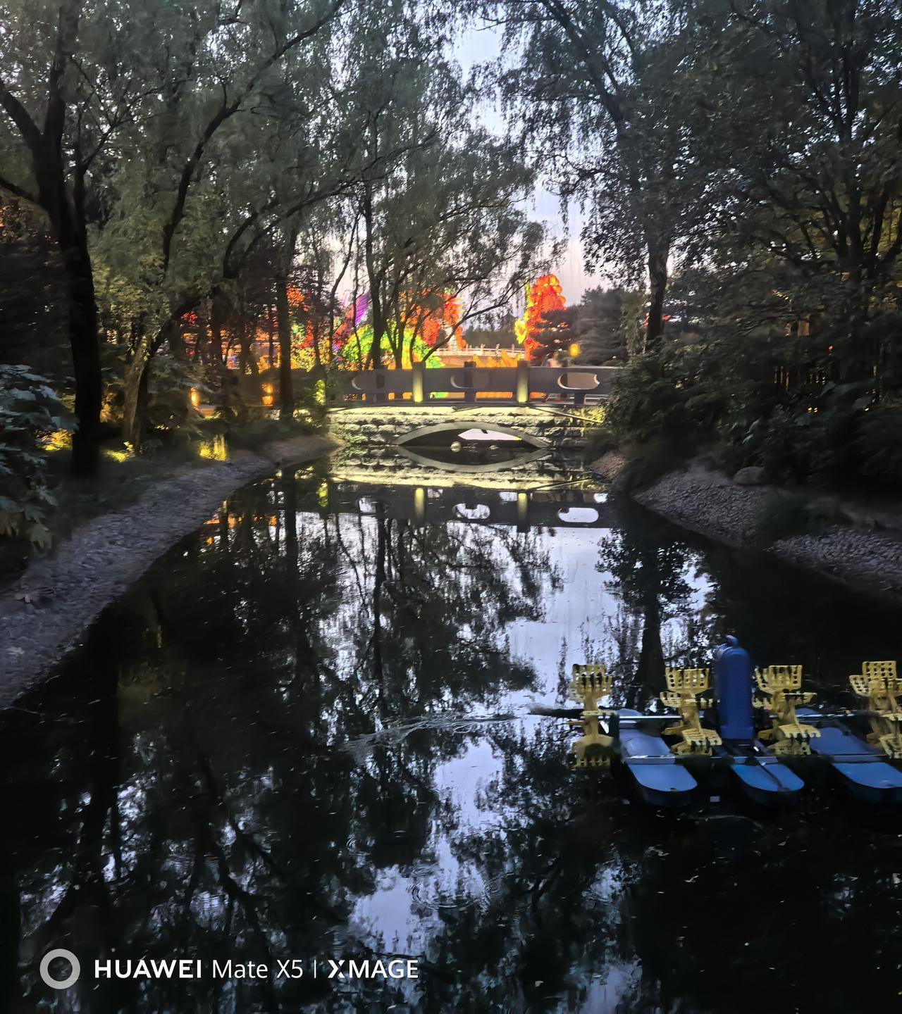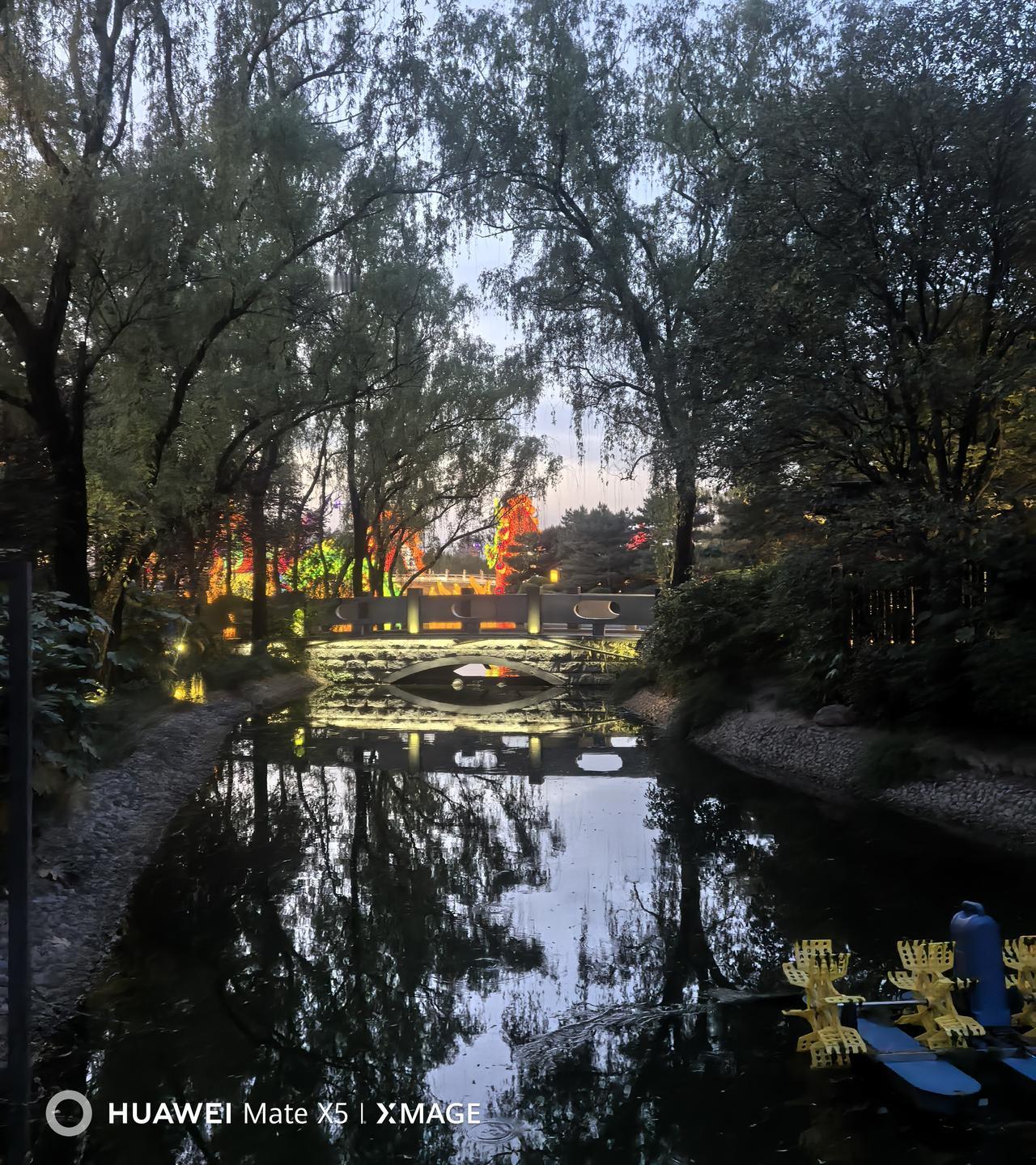 晒图笔记大赛昨晚20260418,我和老何以小区南门出发,途经大唐芙蓉园春明门.西门,来到御宴宫里面的小溪旁的小桥下的水流,坐在石凳上,看着芙蓉园,边聊边仰望星空与映入眼帘的景色。心情特好…早安快乐