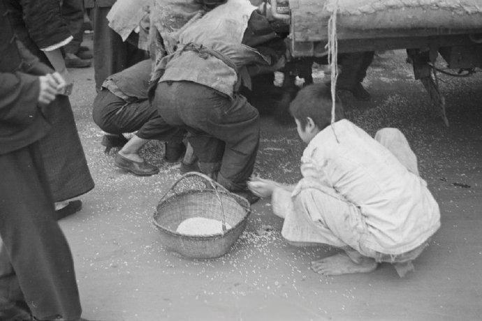 1937年,上海街头,战火下的乱世,粮食极度紧缺,市面物资匮乏,普通人连最基础的一餐温饱,都成了遥不可及的奢望。卡车上运送的稻米沿路洒落,米粒散落在冰冷的地面上,对于饥寒交迫的百姓而言,这些都是活下去的希望。