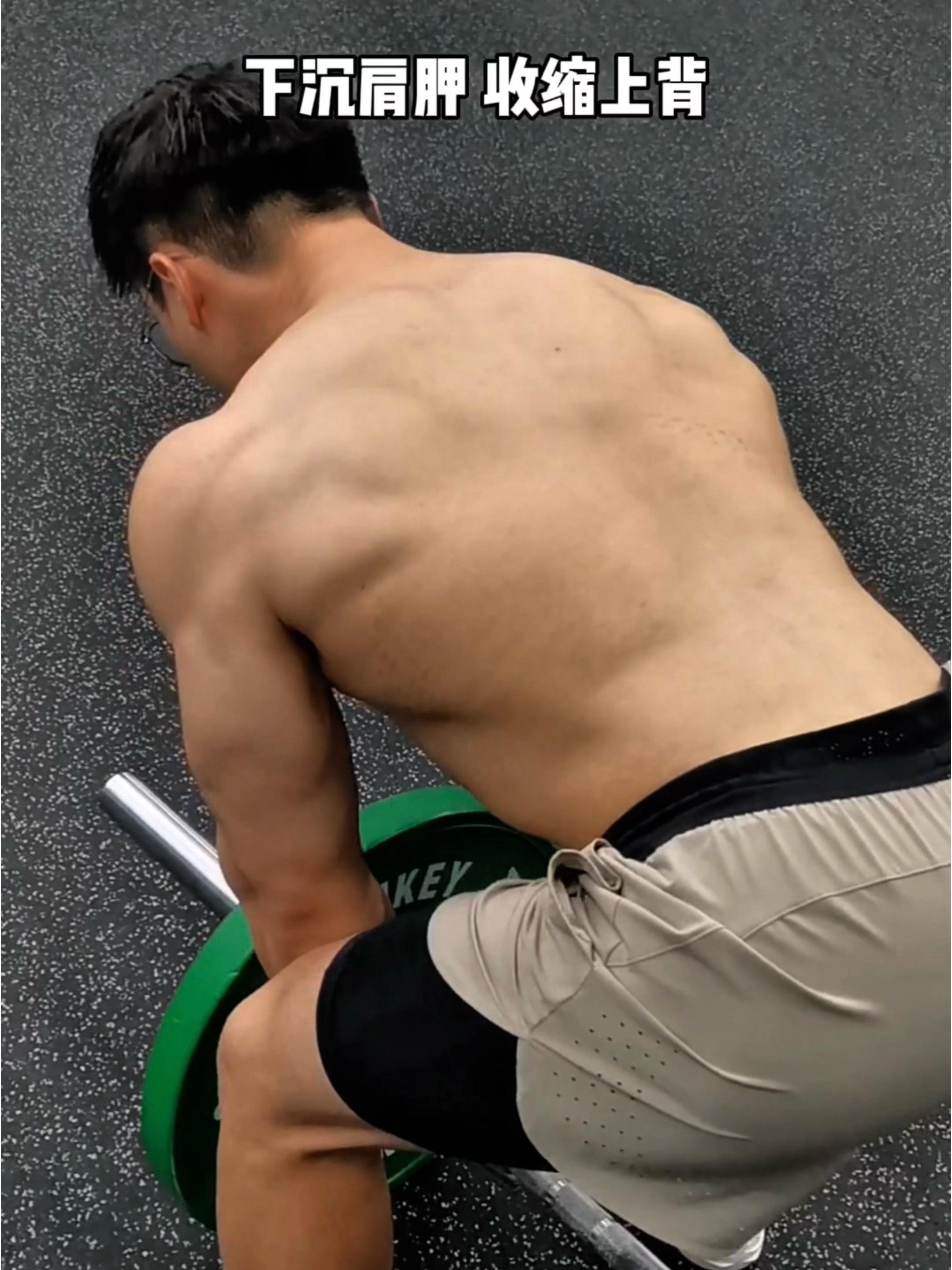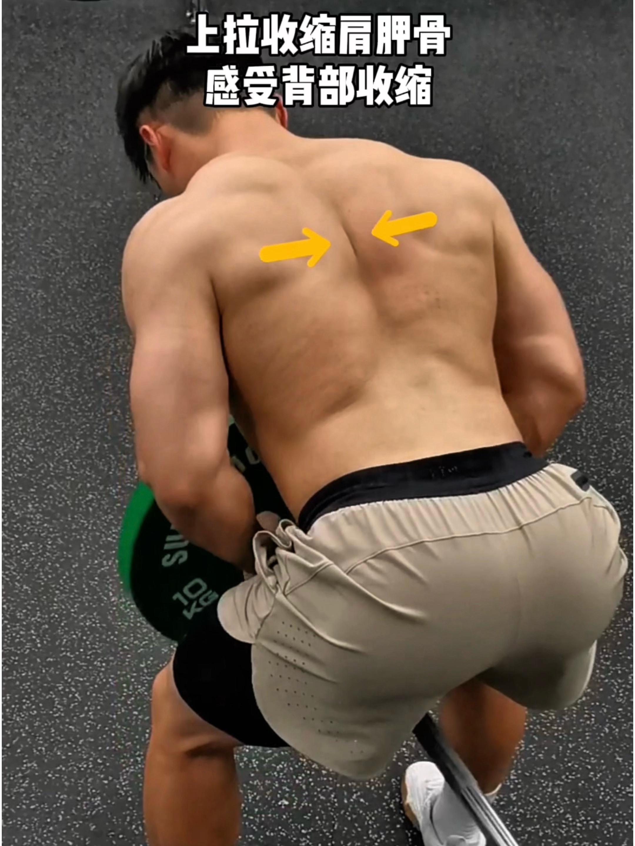 上拉内缩肩胛,感受背部肌肉收缩