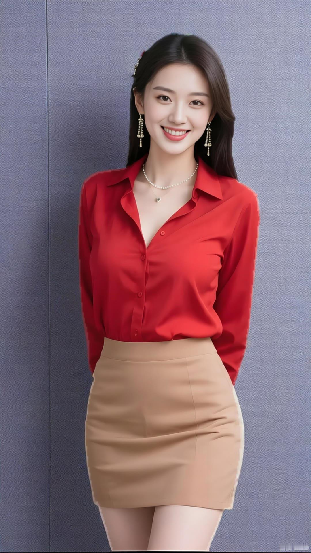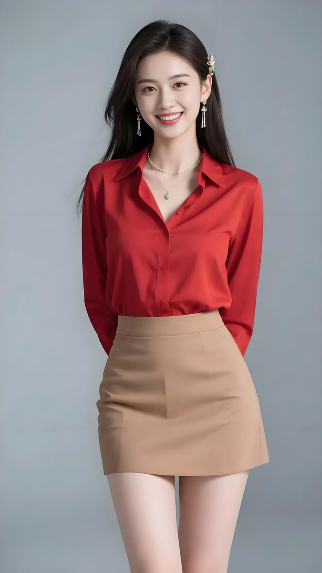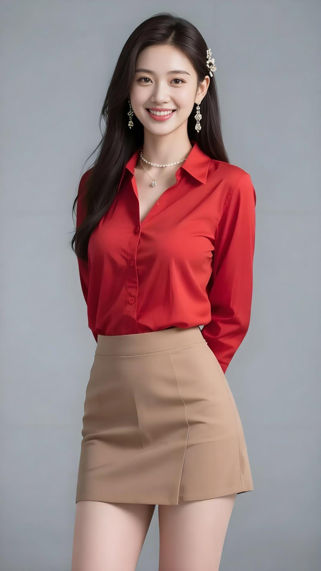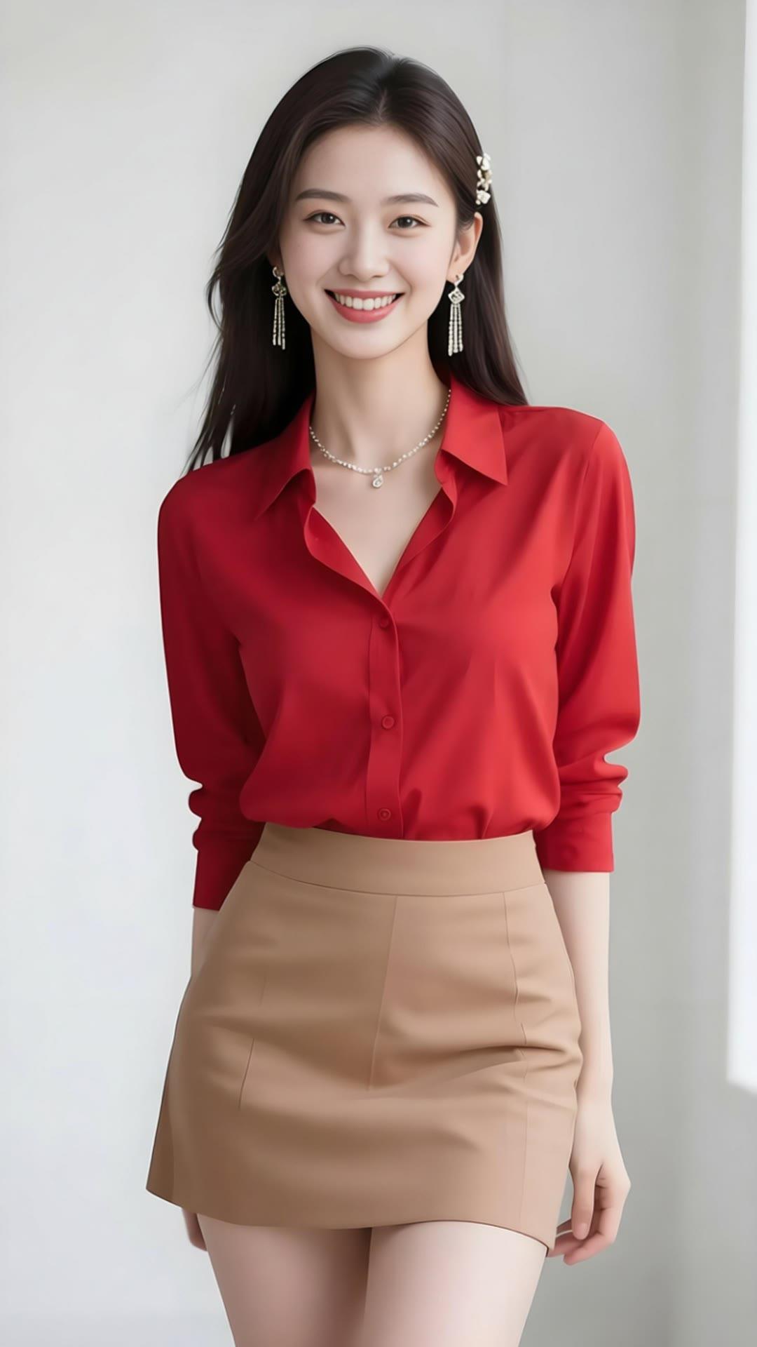 优雅红裙,闪耀珠宝,微笑的美丽瞬间