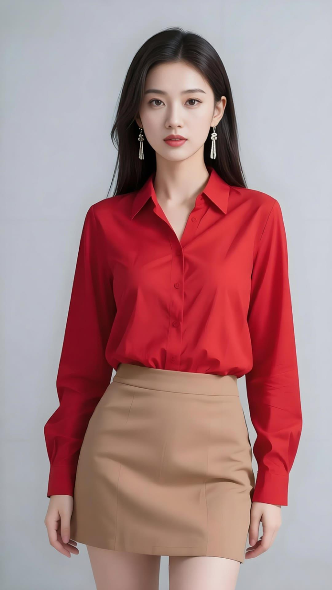 一袭红裙,满面桃花,优雅冷颜。