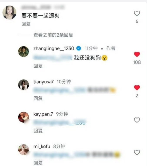 张凌赫ins更新萌照!条纹男大与狗狗的温馨时刻~ 张凌赫还翻牌回复粉丝 “我还没