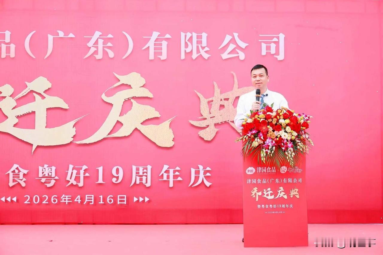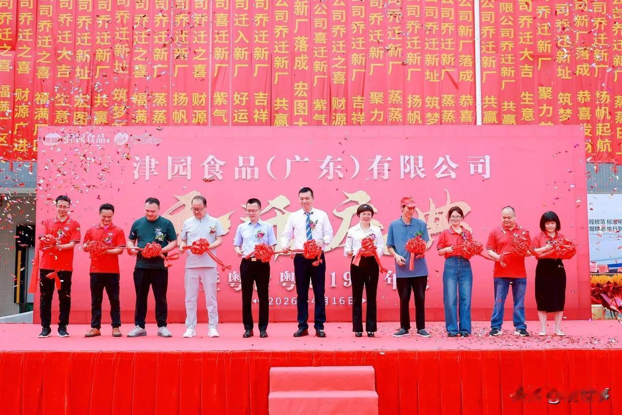 2026年4月16日,津园食品(广东)有限公司乔迁暨粤食粤好19周年庆典隆重举行。南山镇党委书记朱伟伟、镇人大主席曾延军、副镇长郑桂斯,粤食粤好品牌董事长、总经理及企业核心管理层出席活动,各大供应商、加盟商、合作伙伴及各界重要嘉宾齐聚现场,共同见证企业发展新篇章。