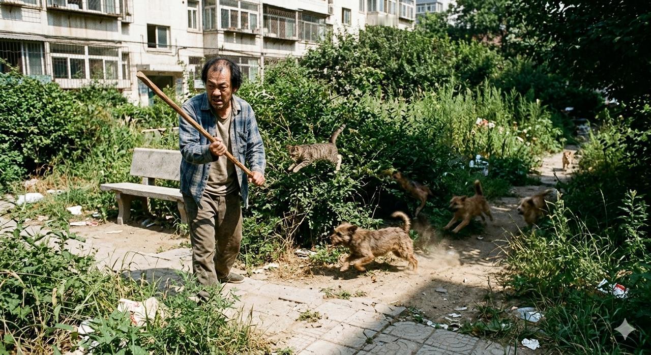 我们小区有个男人,50多岁,未婚无子女,父母也已离世。他没有工作,靠低保救济生存,每天在小区里无所事事地游荡,手里总习惯性地拿着根棍子。