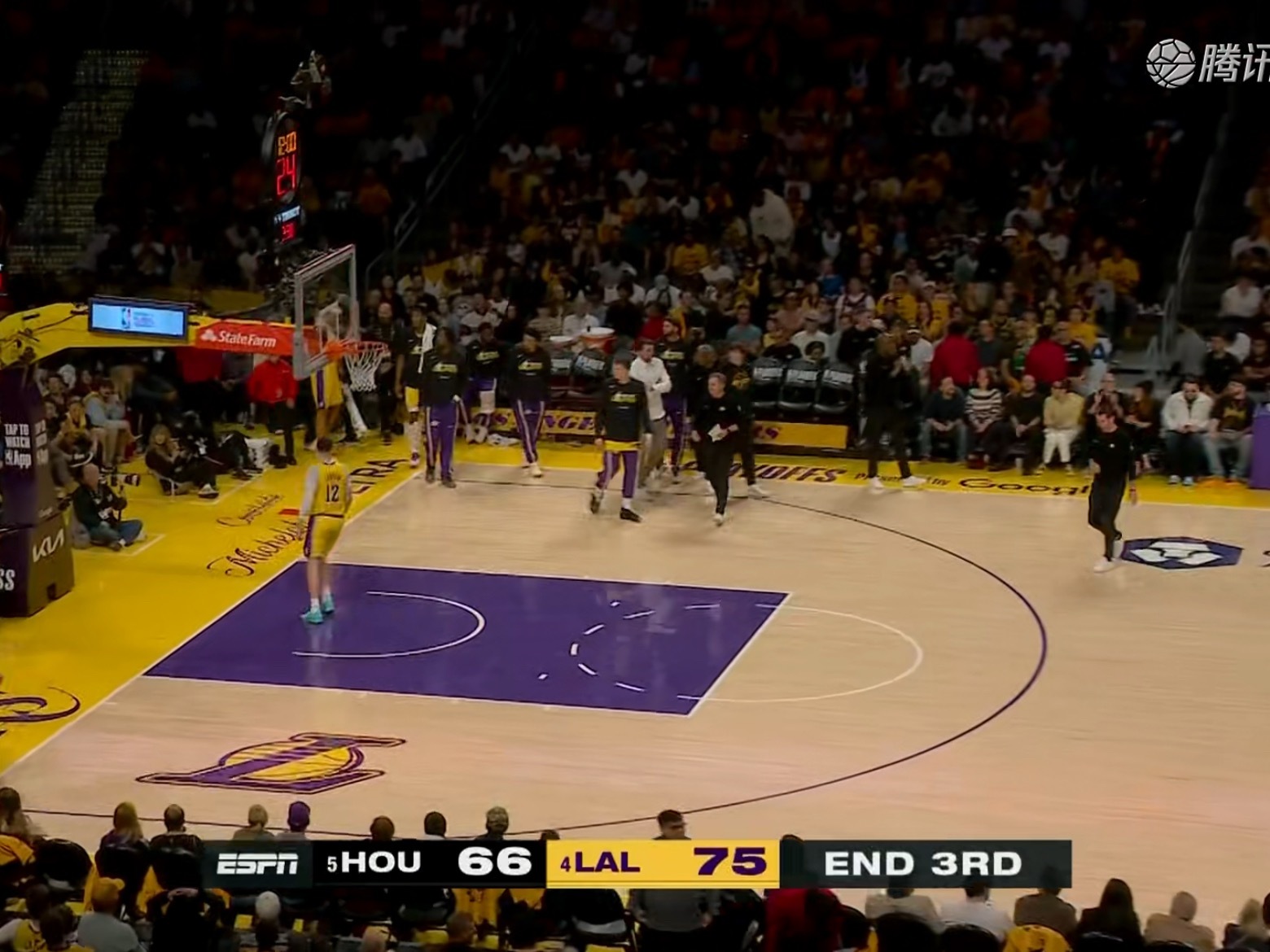 湖人领先9分进入第四节!顶住火箭vs湖人