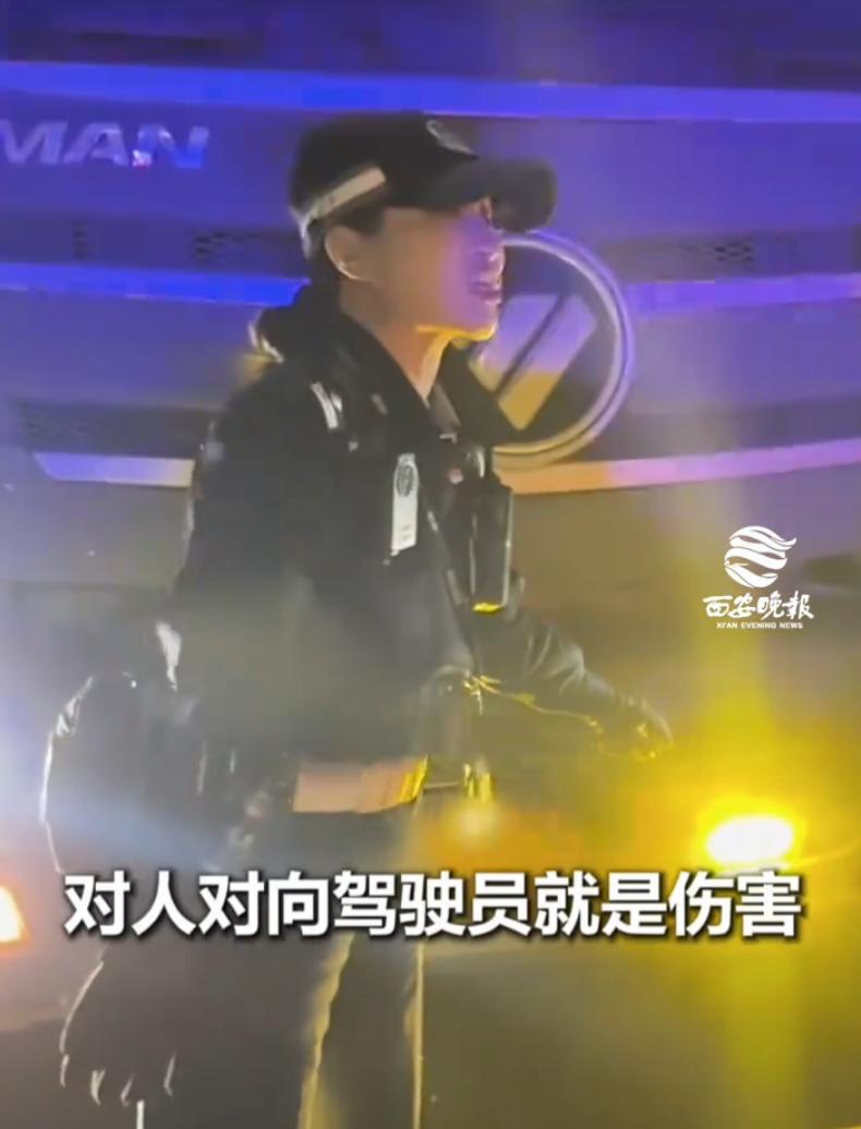 视频中,这名女交警在执法时相当霸气,指着假装的射灯质问司机:这是什么东西?你告诉我这是么东西?