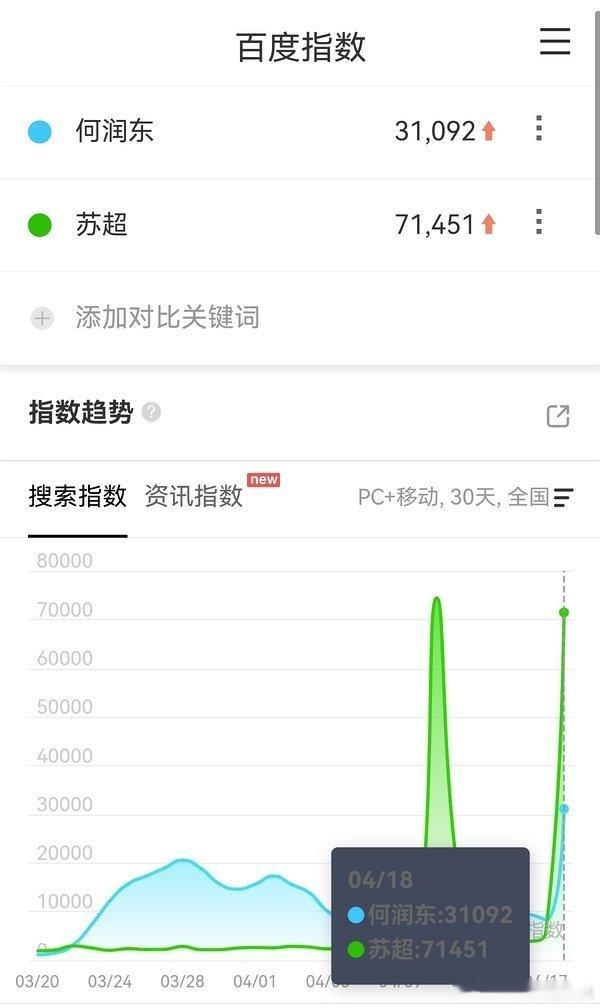 方圆八百米百指次日2.1万,苏超顶流来着,何润东百指破3万。现在剧的热度远远赶不上其他了